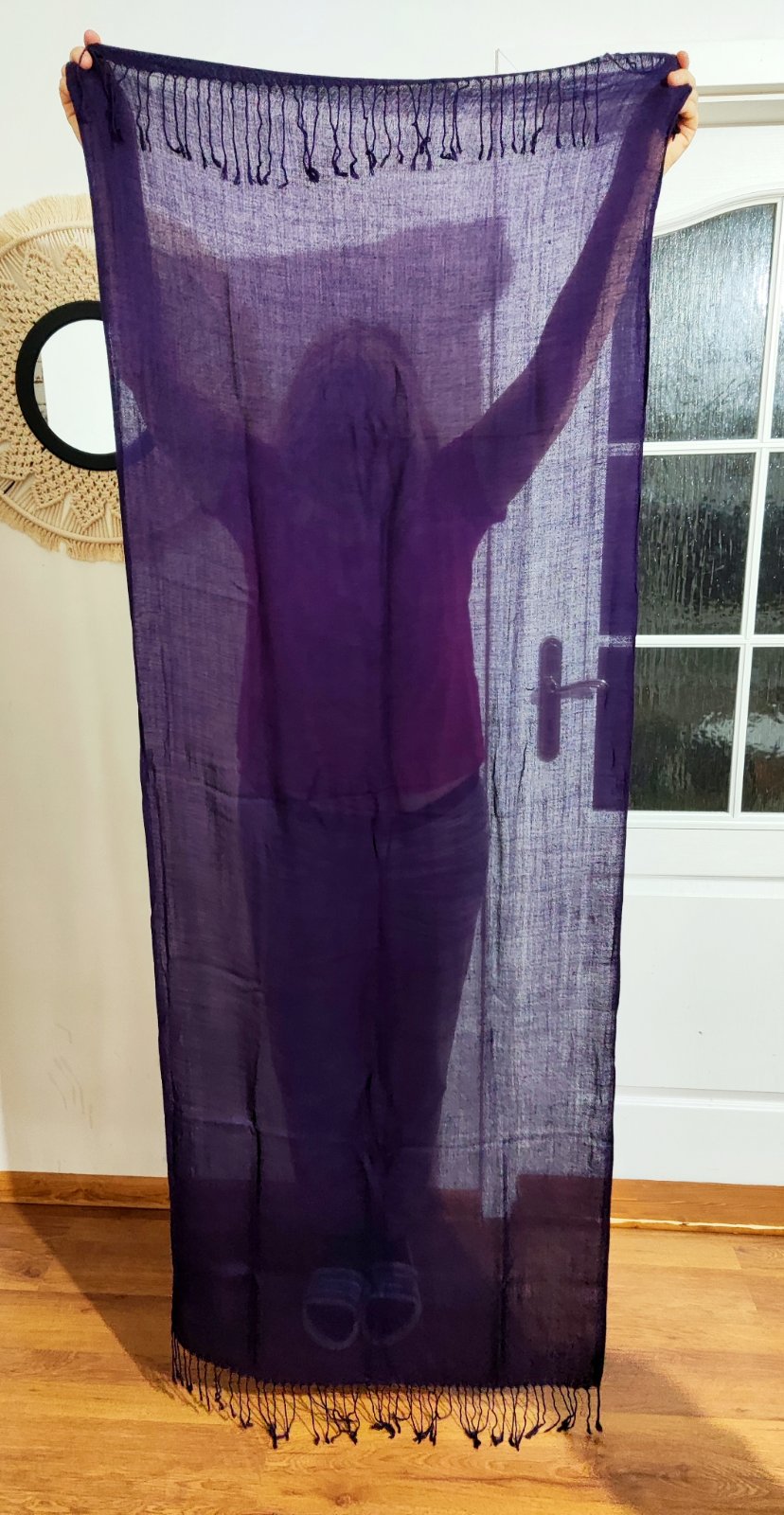 tenký bavlnený šál/šatka na krk,veľmi variabilný,kvalitný,krásna zvláštna farba - fialovo - bordó - cyklámenová ( podobná ako je farba sliviek ),materiál - tenký úplet - tričkovina,30 x 200 cm, dá ...