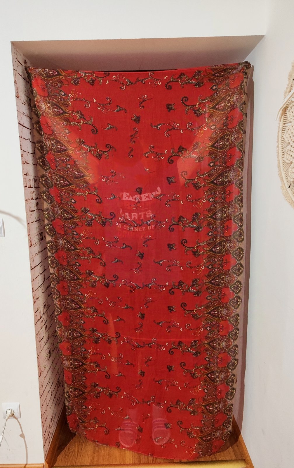 Jemný šifónový šálik, šatka obdĺžnikového tvaru, v super stave, farba červeno-biela. Rozmer: 47x160cm V bazáriku mám veľa vecí, s ktorými sa dá kombinovať, nakuknite;)