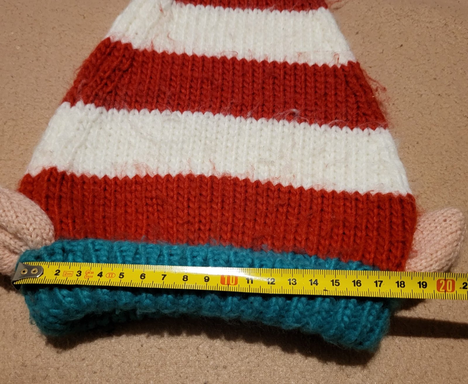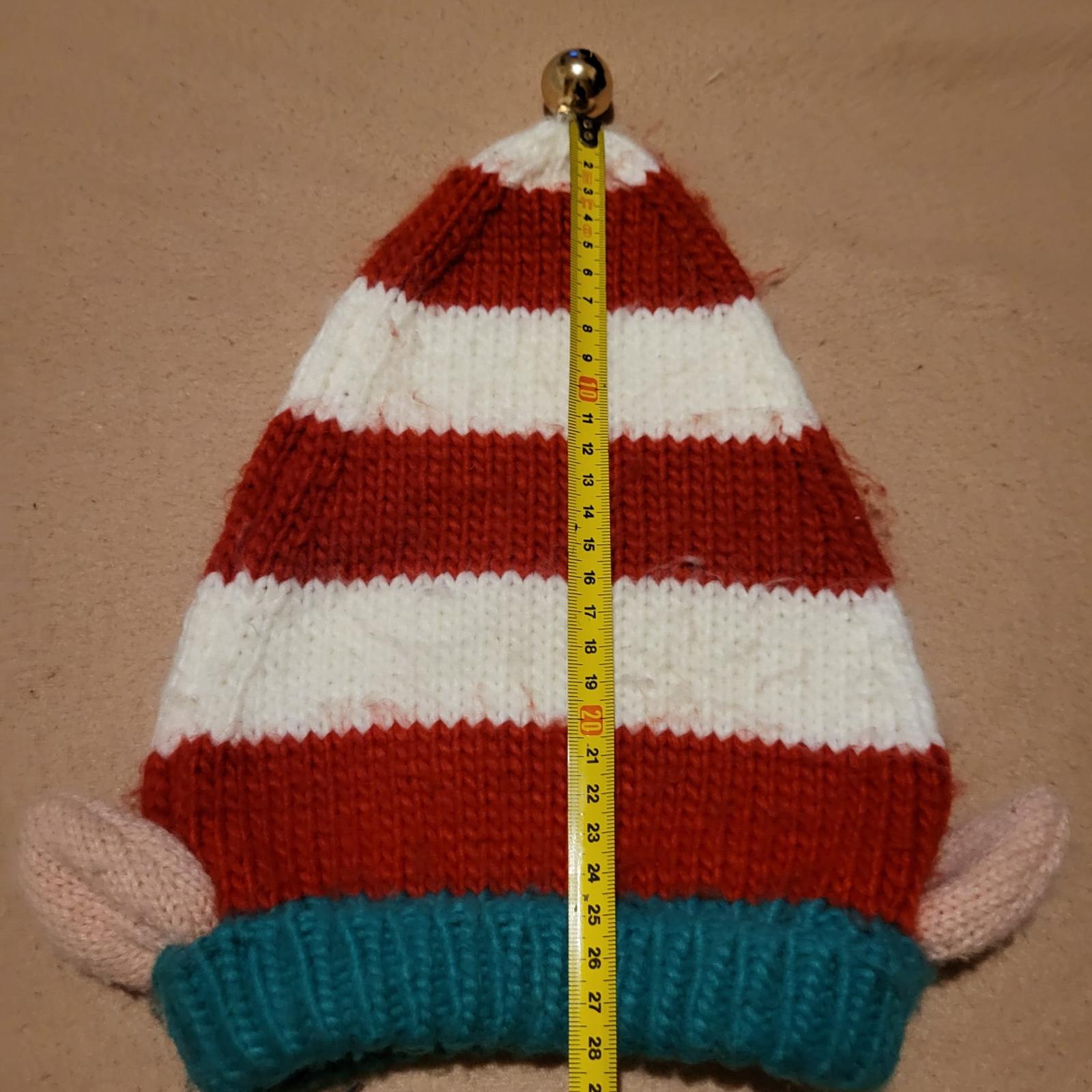 Predám viac nosenú čiapočku - škriatok s rolničkou. Veľkosť je uvedená L, podľa šírky velk. 92,98