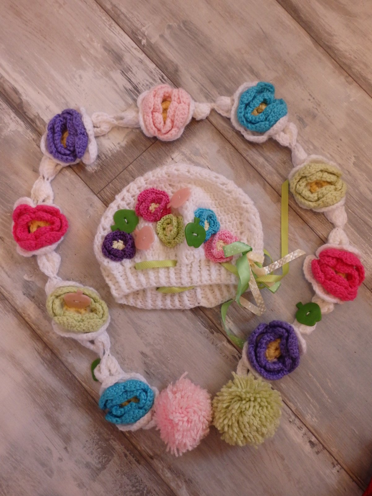 Nádherný handmade kompletík pre dievčatko, vek 5/8 rokov, ponosíte dlho.