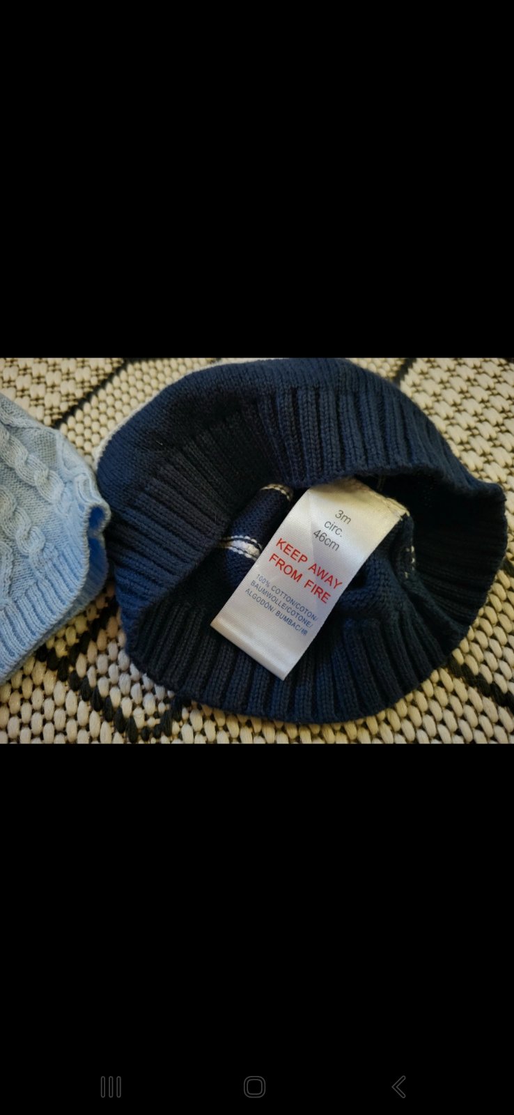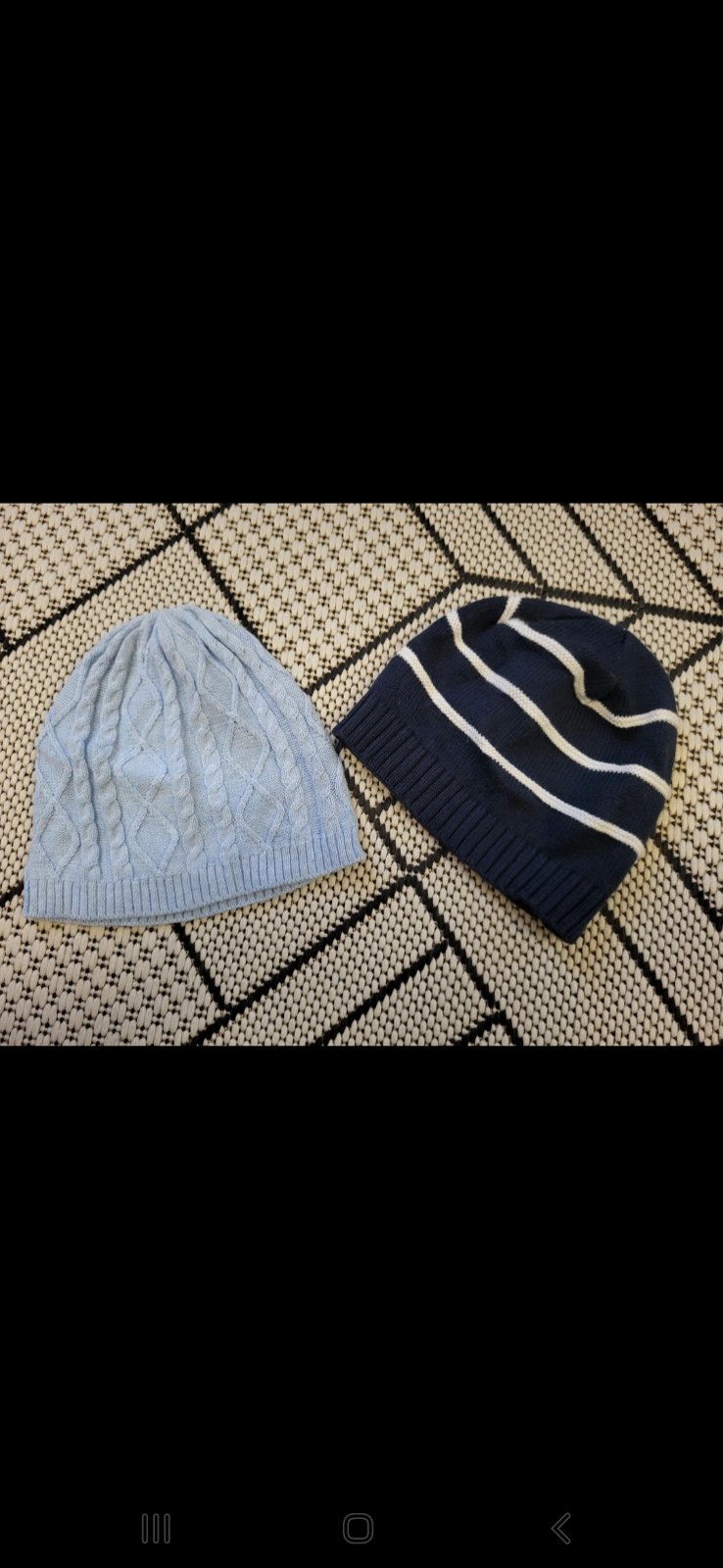 Obe super stav, tenšia veľmi príjemná pletenina, tmavomodrá obvod 16x2, výška 14cm, bledomodrá obvod 16,5x2 výška 15cm, v skutočnosti krajšie ako na fotkách a kvalitné, dovoz Anglicko, poštovné buď obyčajne alebo doporučene