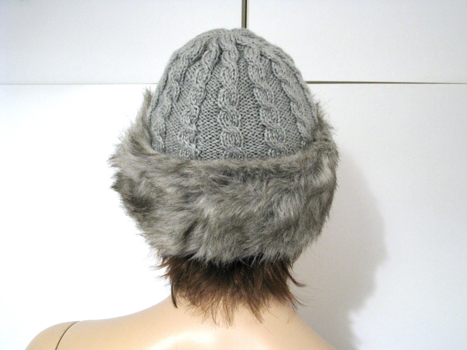 Sivá teplá pletená čiapka s pásom z umelej kožušiny. Má 2 vrstvy - vnútorná je pôvodná čiapka z Marks & Spencer, na vrchu má dorobenú ešte jednu vrstvu s prepletaným vzorom, ktorú uštrikovala ručne moja mama. Čiapka je tak hrejivejšia a neprefúkne ju. Bez poškodení. Veľkosť som uviedla len odhadom, je to na ženskú hlavu, skôr menšiu, v prípade záujmu odmeriam.