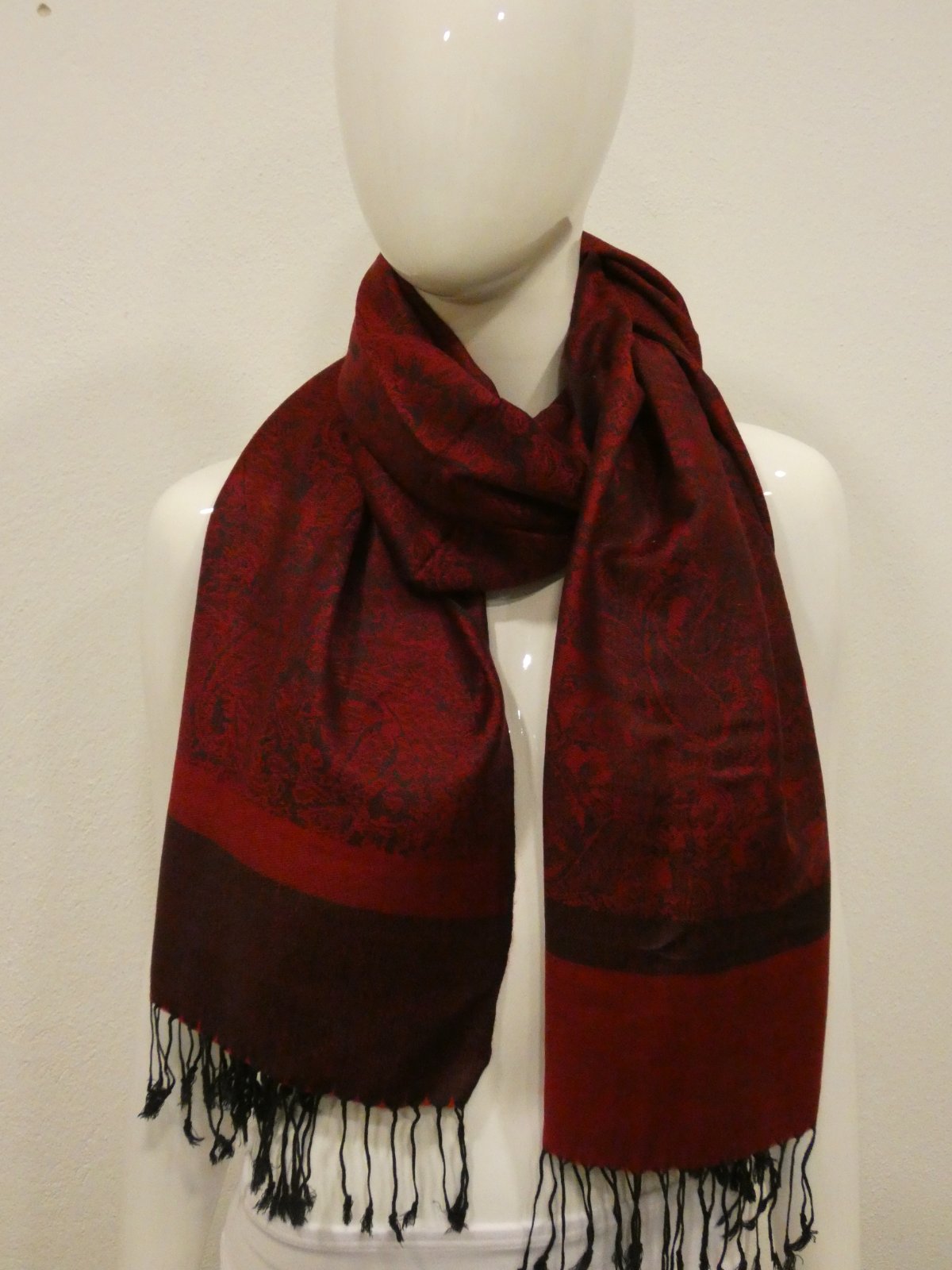 Nosený bez poškodenia , alebo žmolkov. Materiál 90% kašmír a 10% silk, je to veľmi príjemné na dotyk. Rozmery sú šírka 69 cm a dlžka 150 cm.
