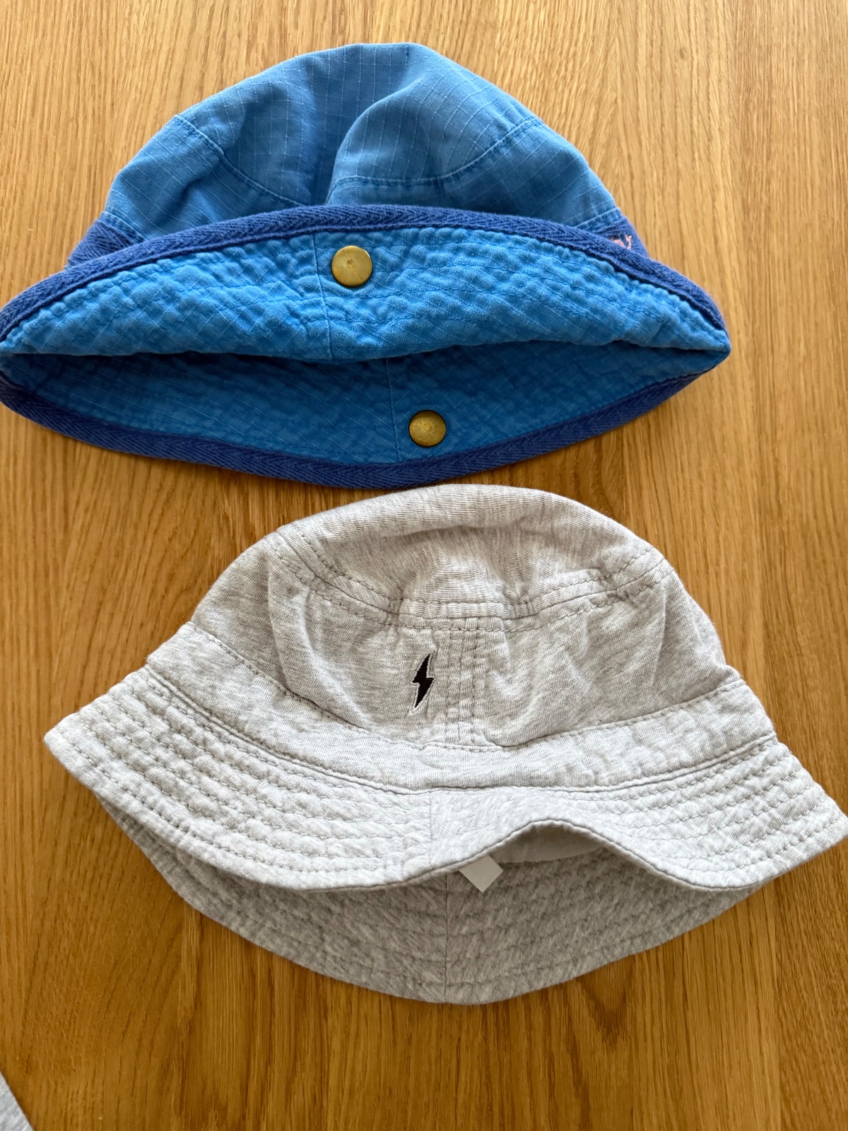 Jedina minichybicka je na sedom klobuciku ako je prisity blesk, tak dole pri blesku je mala dierka, nie je to vidiet pri noseni, iba ked latku natiahnete a divate sa zblizka - snazila som sa nafotit.