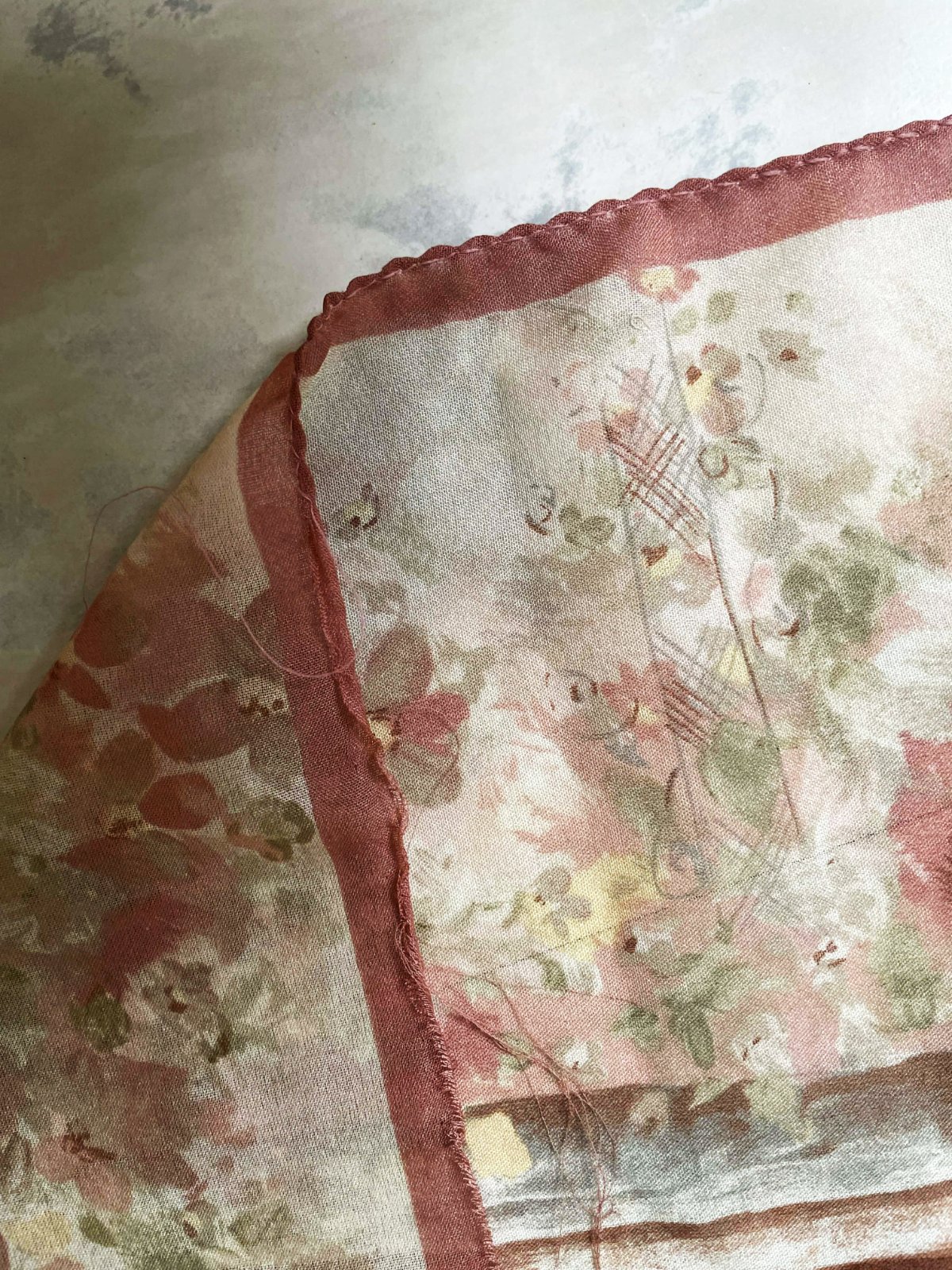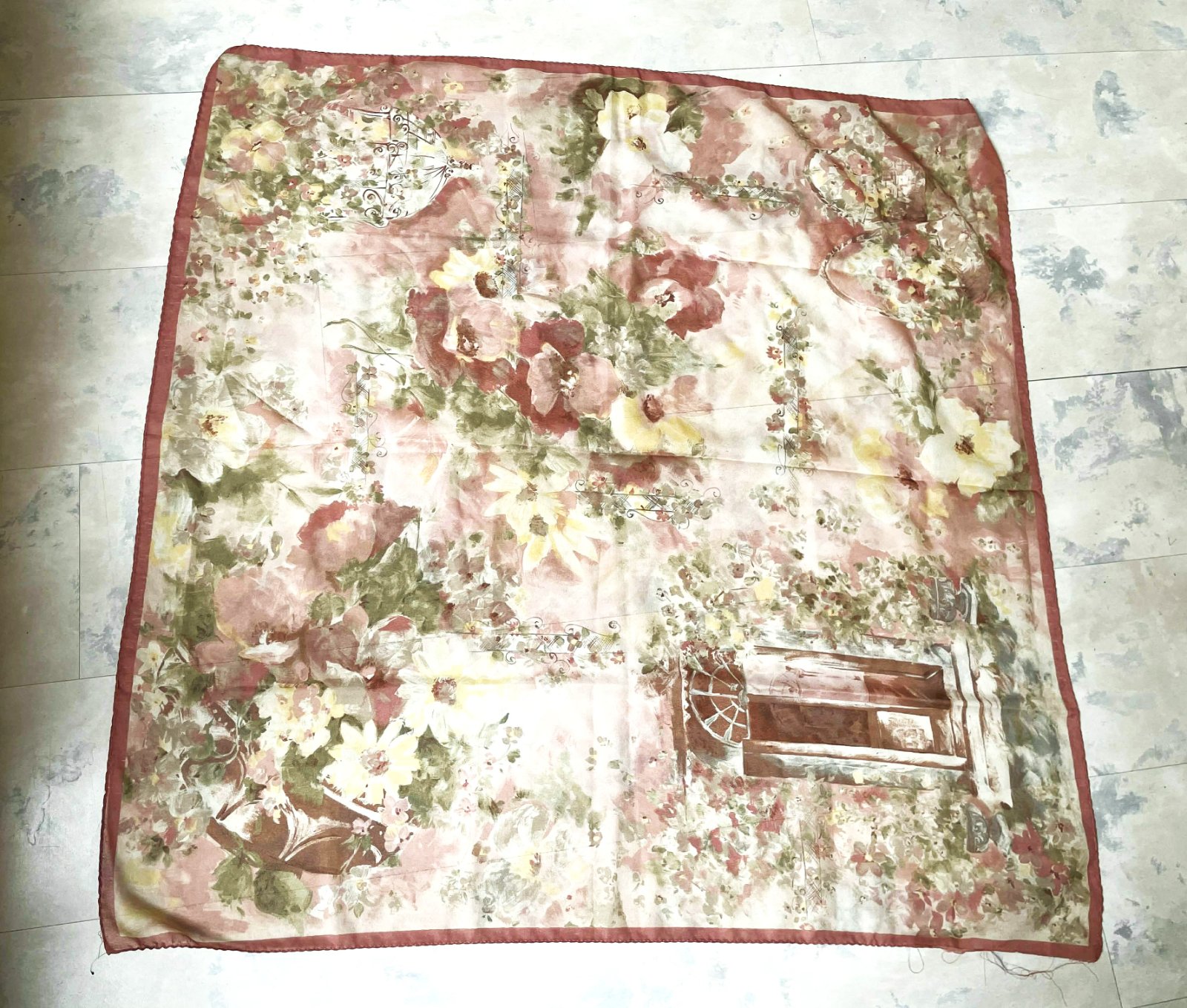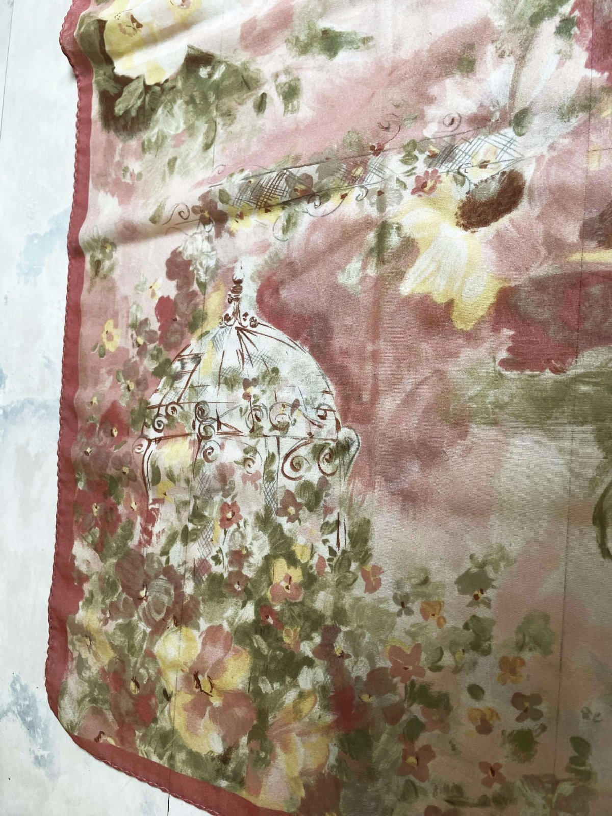 pekná,akoby ručne maľovaná jemná šatka,veľmi zachovalá,jemné zastreté púdrové farby,top kúsok