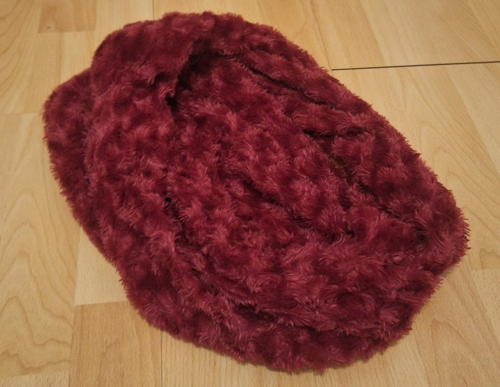 2x nosený šál, povedala by som že je mierne elastický, tá látka je veľmi príjemná jemnučká, šál je odtieňom červenej troška tmavší ako na foto, poprešívaný a zdobený čiernym mäkkým tylom/sieťovinou...