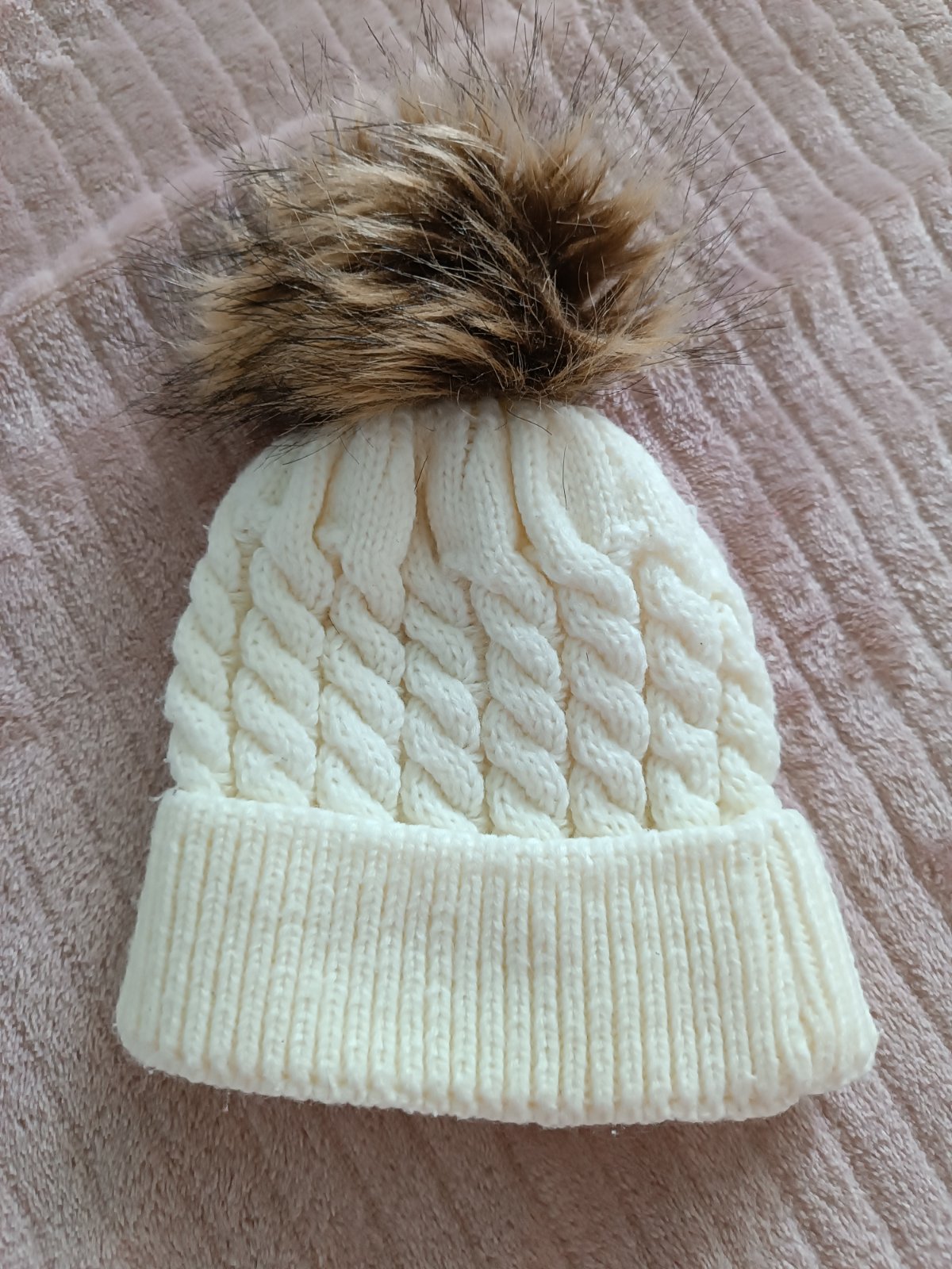 Pletená čiapočka s veľmi pekným vzorom a bohatým brmbolcom. Zahrejte sa v zimnom období krásnymi čiapkami s chlpatým brmbolcom. Veľmi pekné čiapky si obľúbite, skvele sedí, ladí ku každému outfitu...