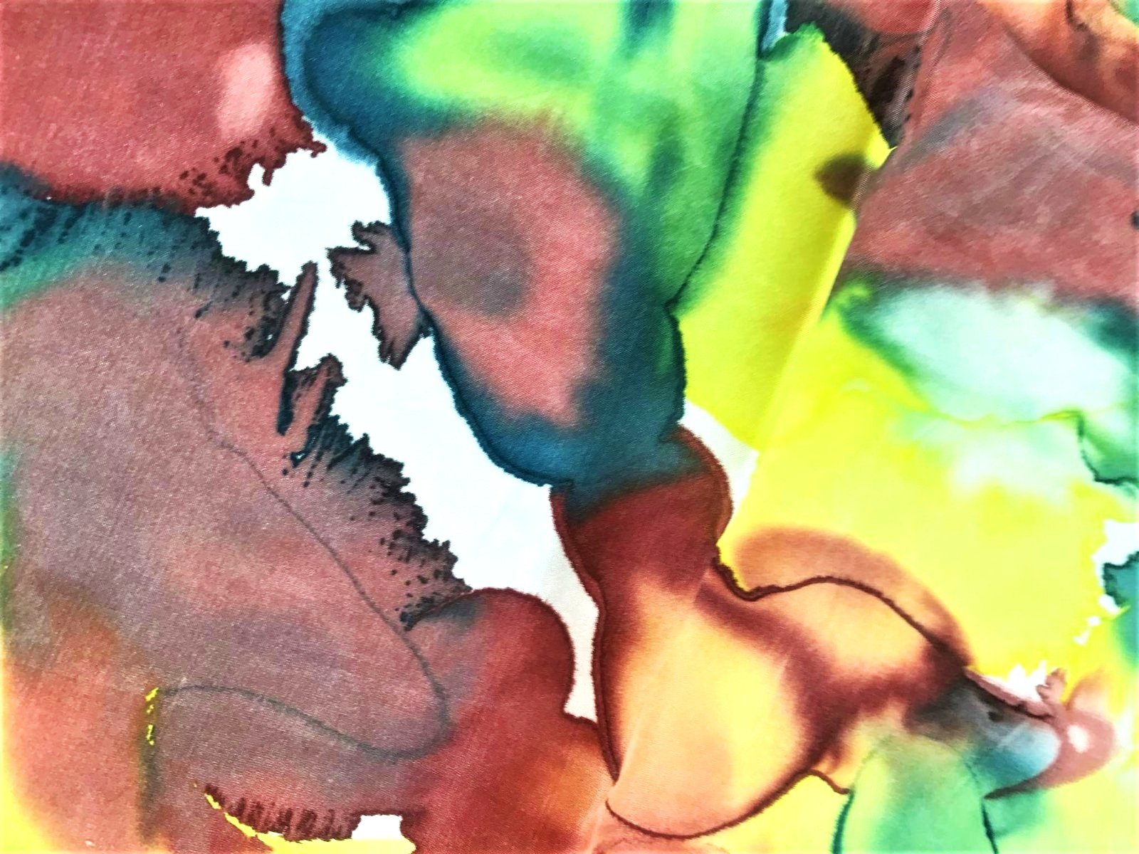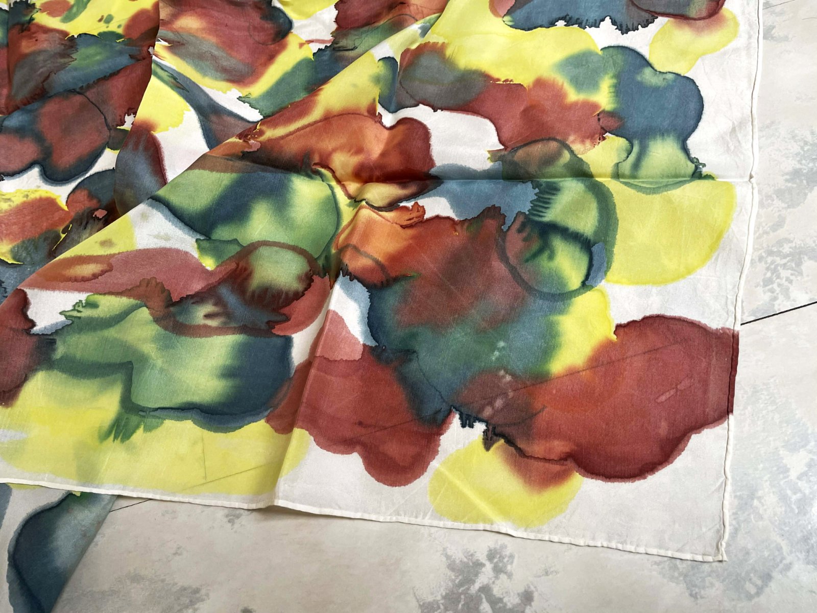 krásna viacfarebná šatka s abstraktným akvarelovým vzorom, akoby ručne maľovaná,