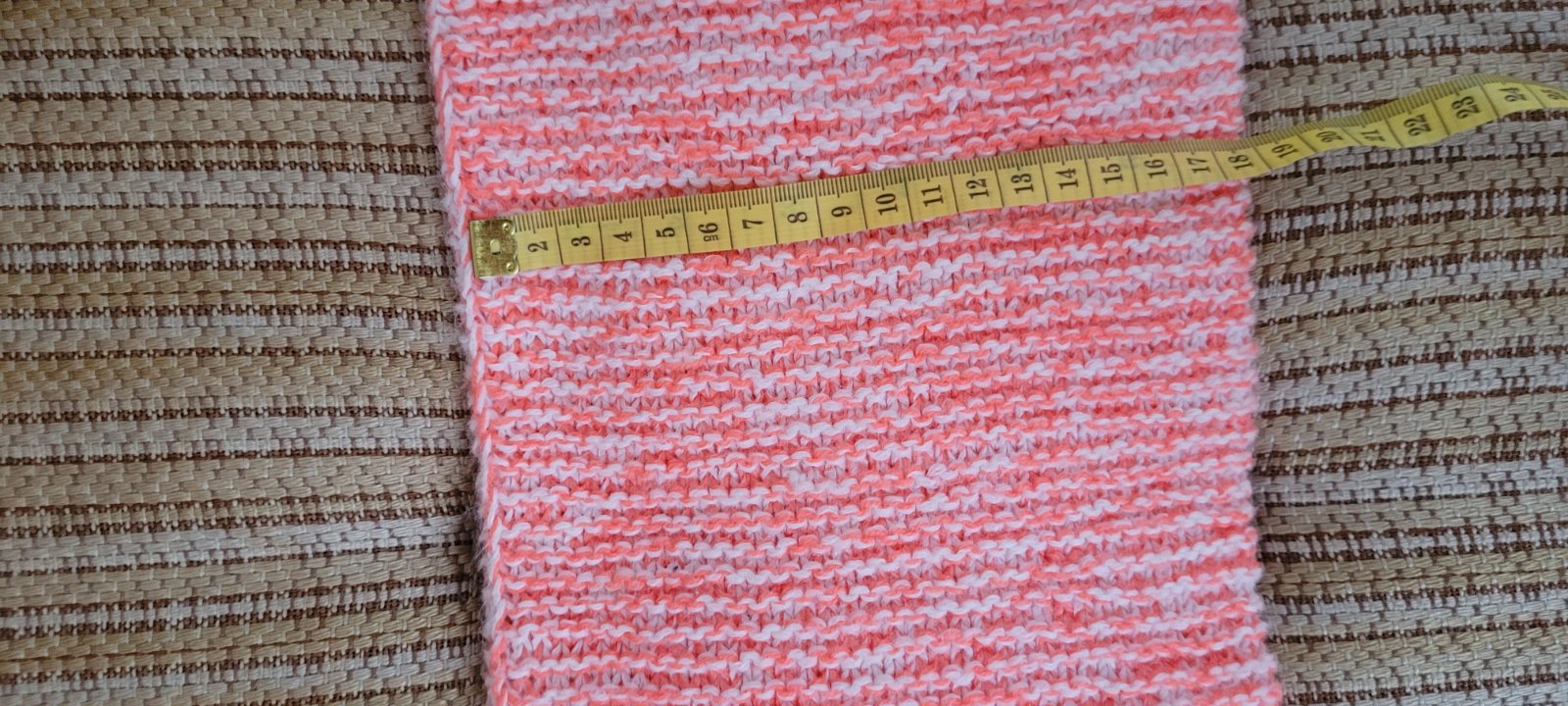 Oranž.-biela, ručne pletená cca pre 8-10r. miery viď v cm na fotkách