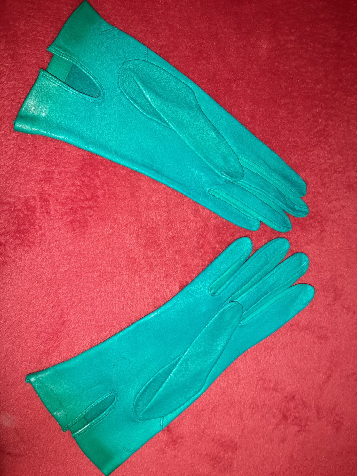 Zachovalé,vzaté raz ináč ležia v šuflíku,malinká patina na zápästí.Jemná rukavičková koža.Nie sú futrované.Vhodné na úzku ruku s dlhými prstíkmi alebo nechtami :).