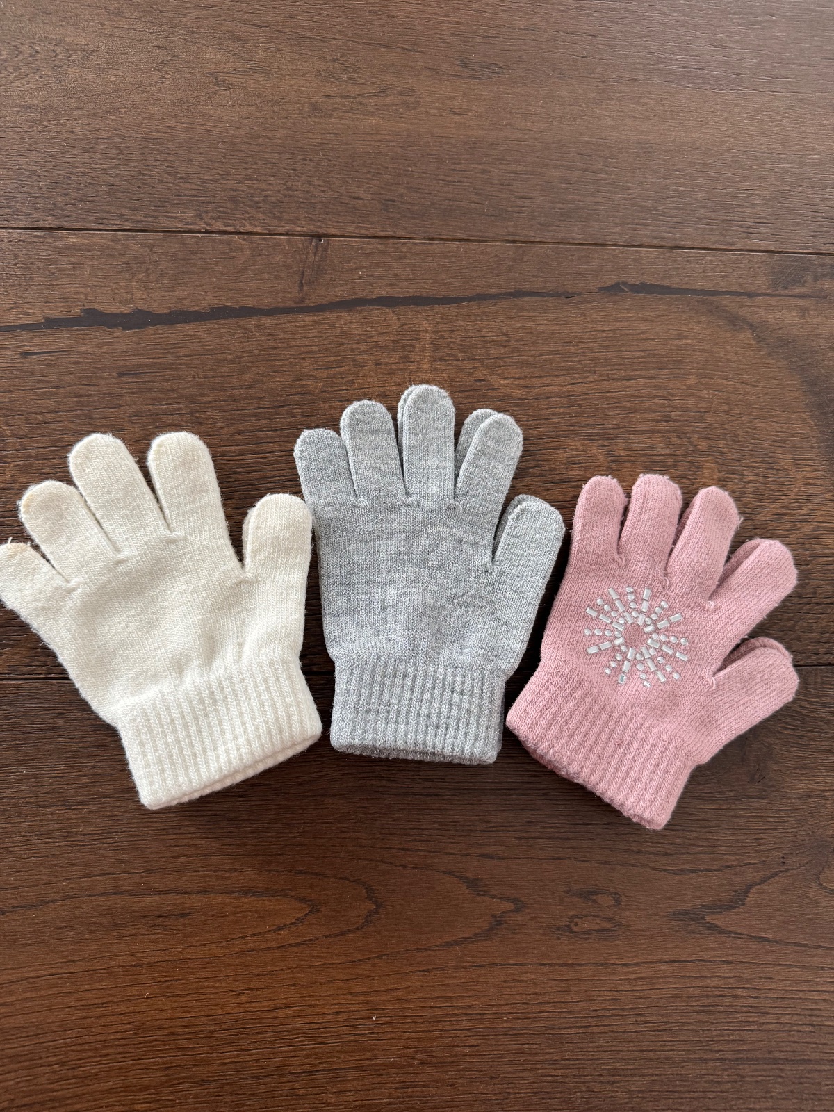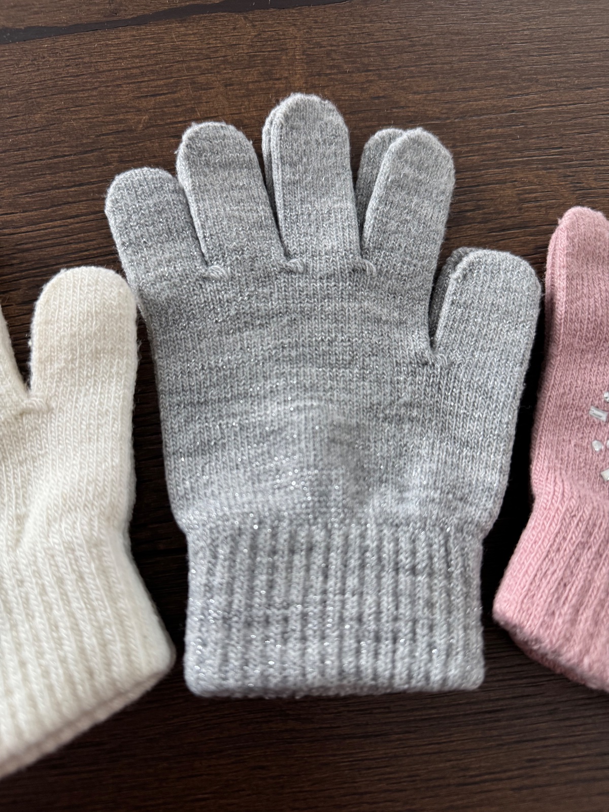 Rukavice F&F , pisane ze jedna velkost ale je to tak od 4-6 rokov. Na ruzovej gluacik asi od pera je to aj na foto. Aj su pomerane na poslednej foto