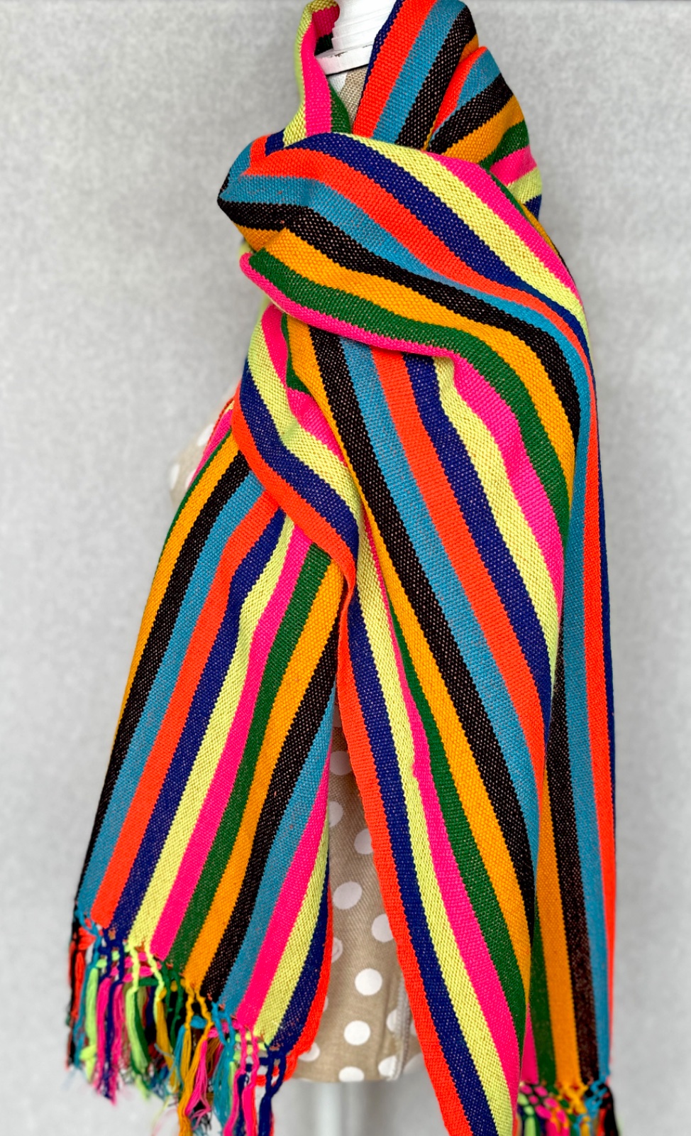 Pútavý šál vo výrazných farbých. Oživí každý outfit.