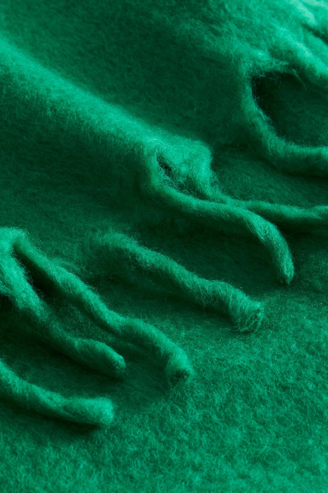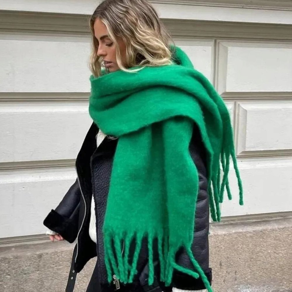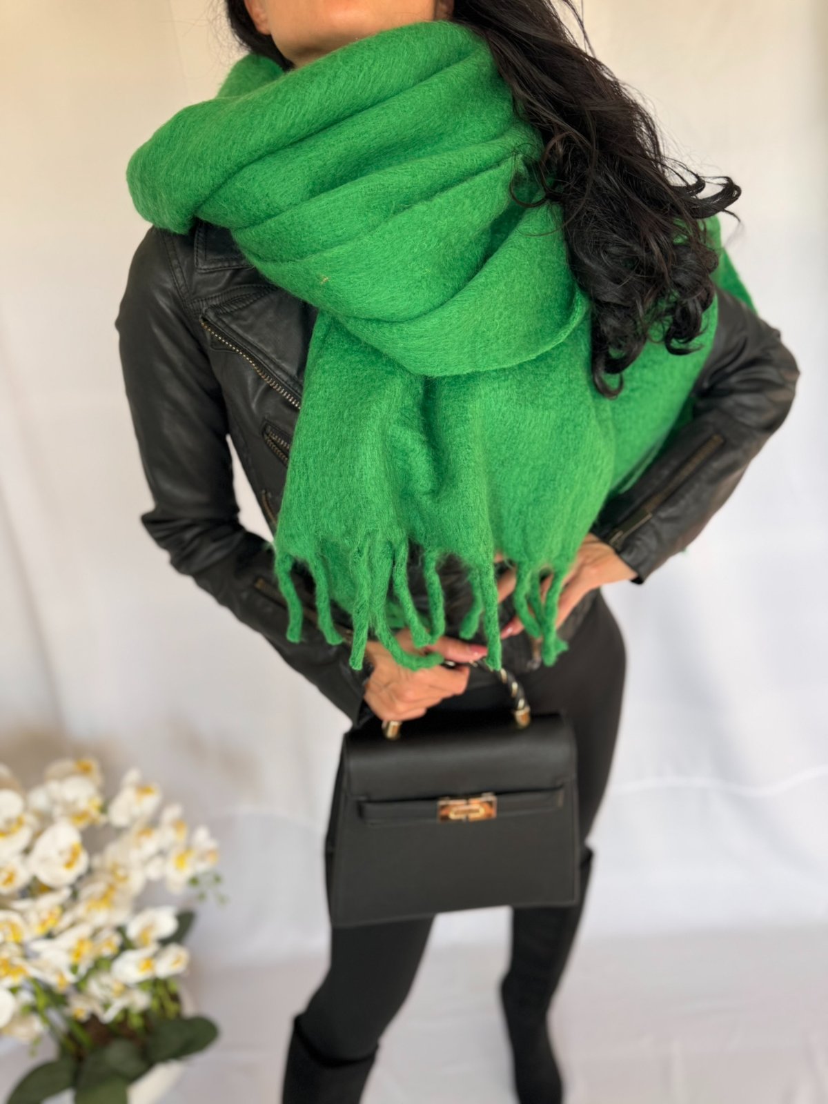 Mäkučký a zároveň jemný šál v krásnej zelenej farbe so strapcovým lemom.