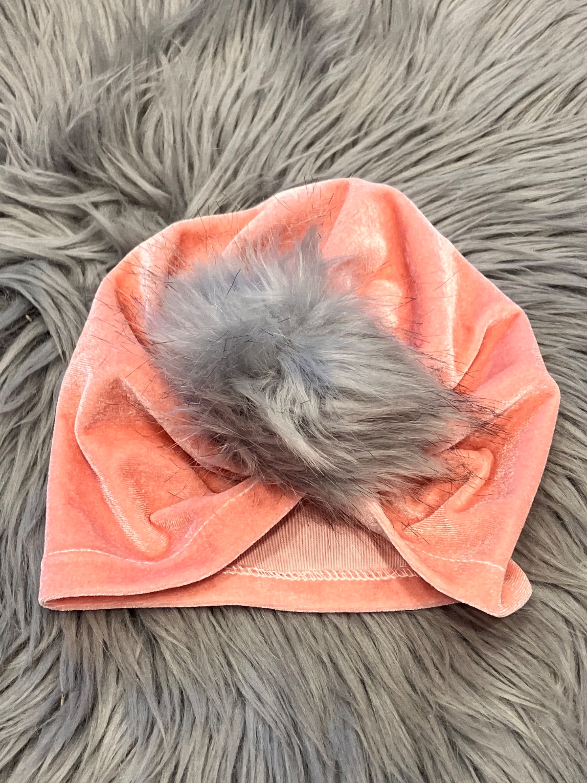 Dievčenská tenká čiapka, zamatová, s veľkým brmbolcom, elastická, veľkosť cca 62.