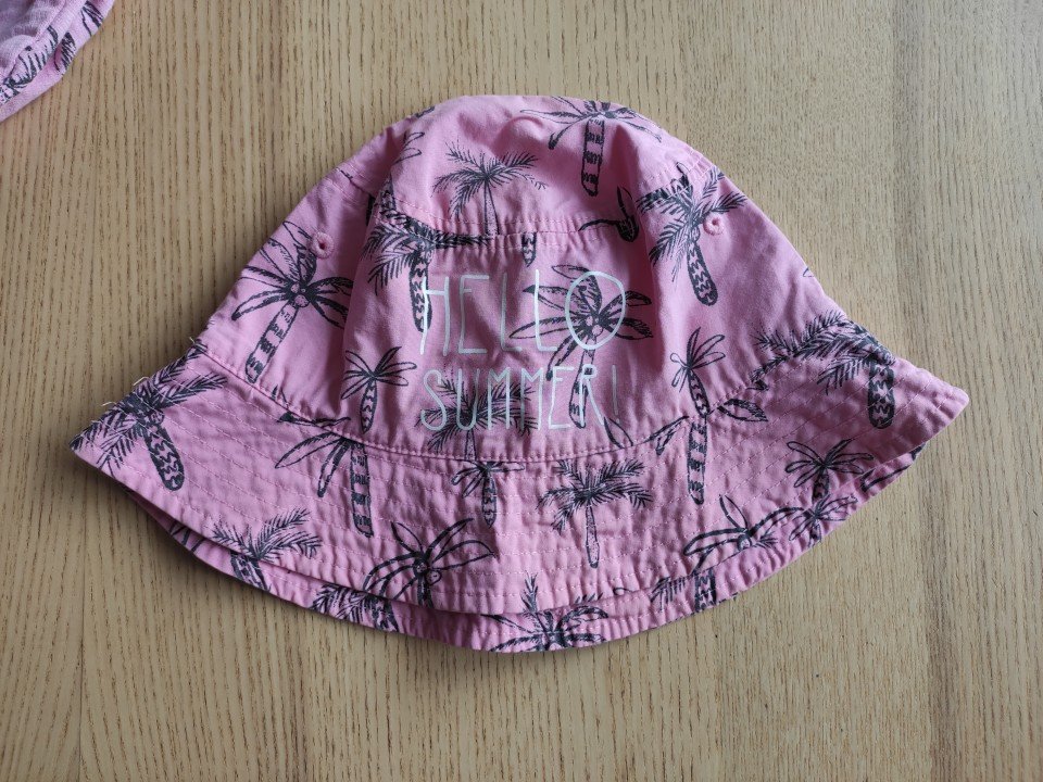 klobúk z bavlneného plátna, nenosený, iba opratý.