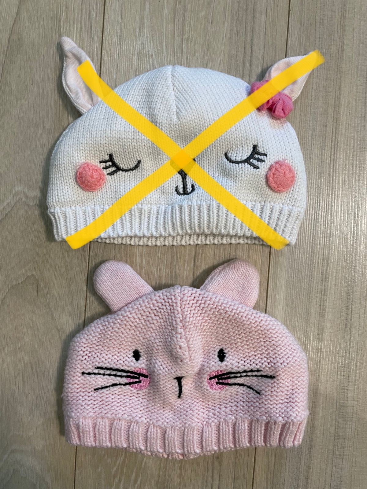 Krásne teplé čiapočky. Top stav. Veľk. uvedená 6-9m ale sedí skôr na 0-3m. 1,50€/ks. Už len ružová.