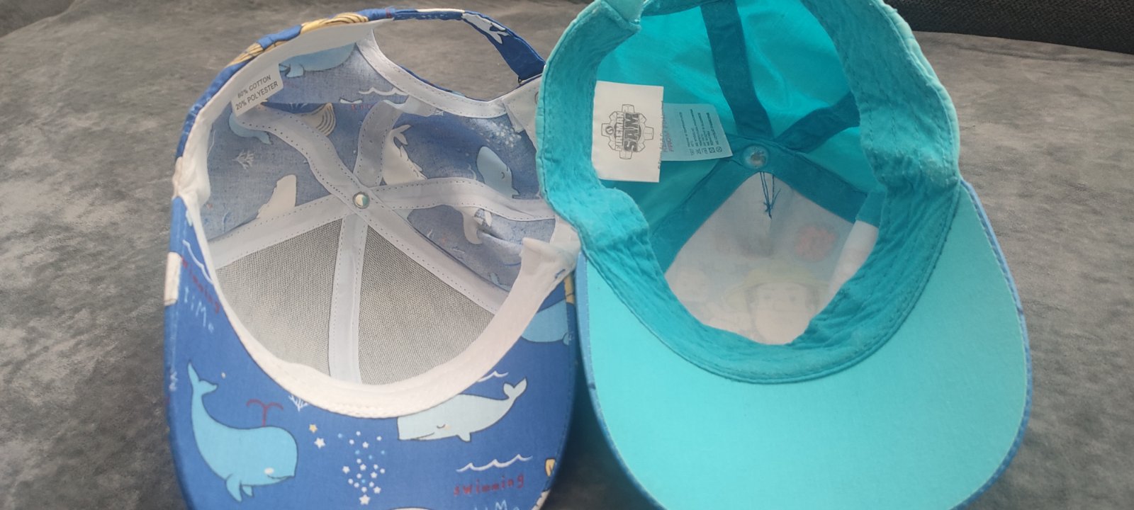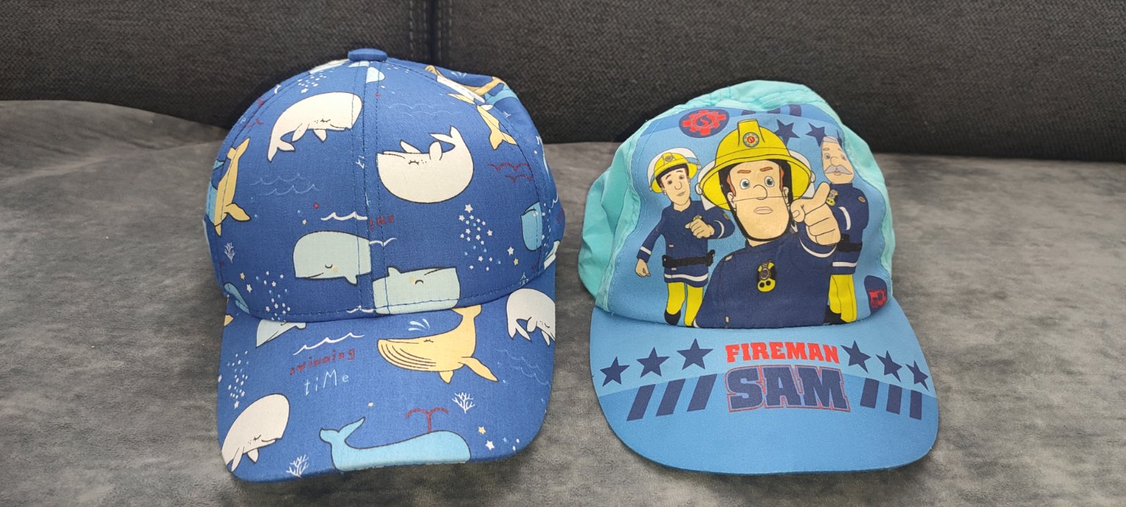 Predám spolu dva kusy šiltoviek pre chlapca veľkosť 48cm. Modrá s veľrybami je nová, nenosená. Čiapka s požiarnikom Samom je nosená, má fliačik zachytený na fotke. Na ihrisko iste poslúži. Syn ju nosil ako dvojročný, vhodné aj skôr.