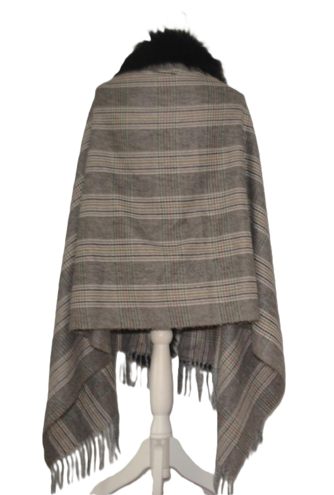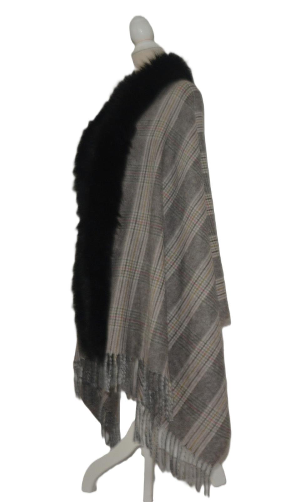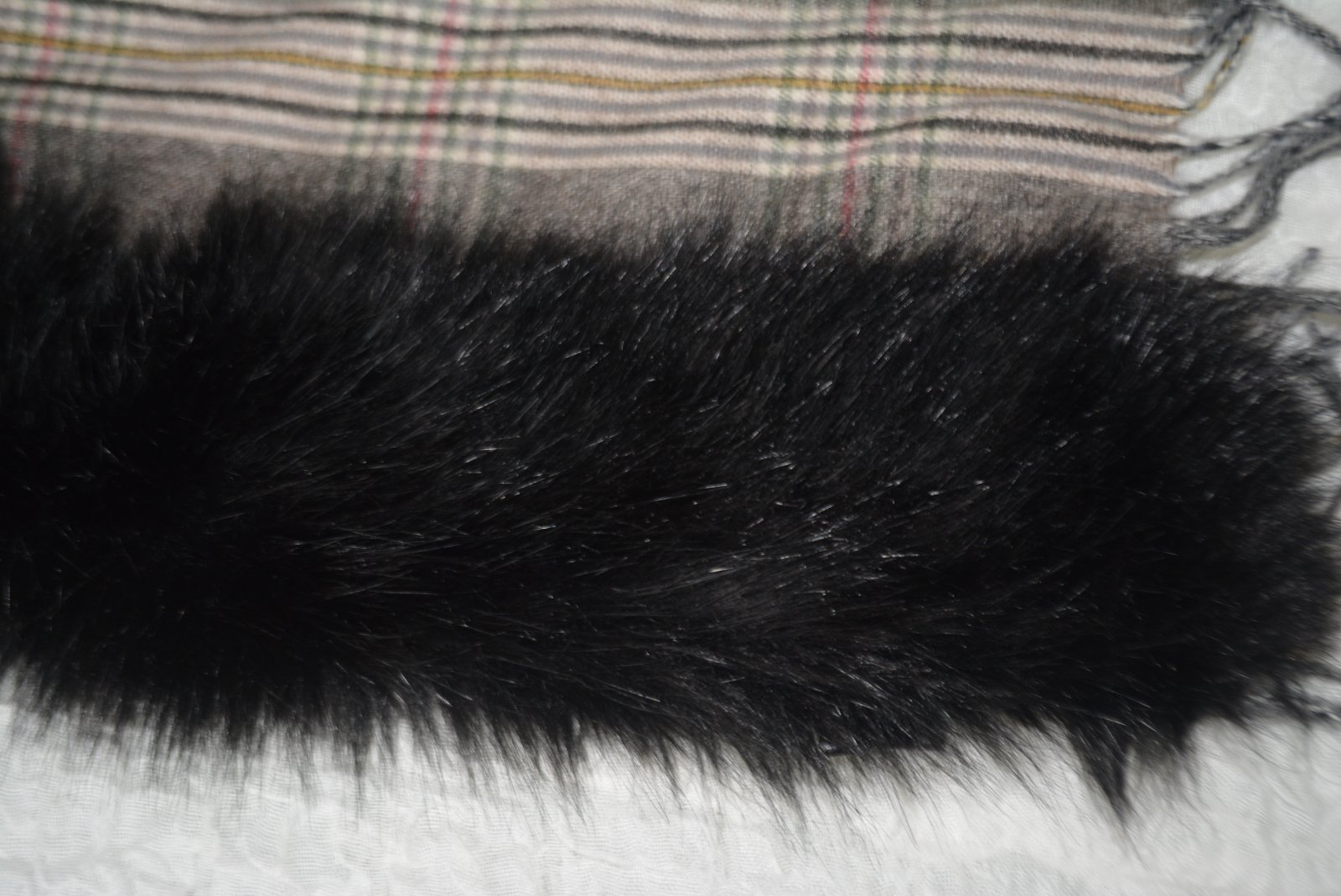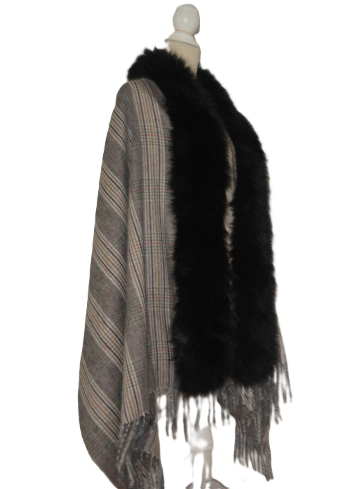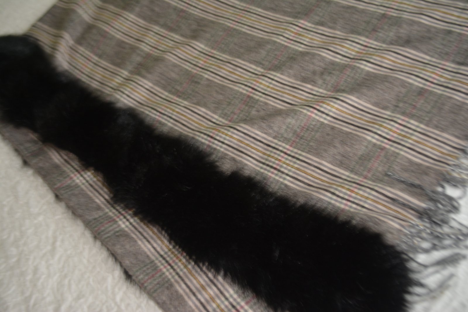 Veľký teplý šál lemovaný po celej dlžke krásnou čiernou kožušinkou - rozmery: 200x75cm.