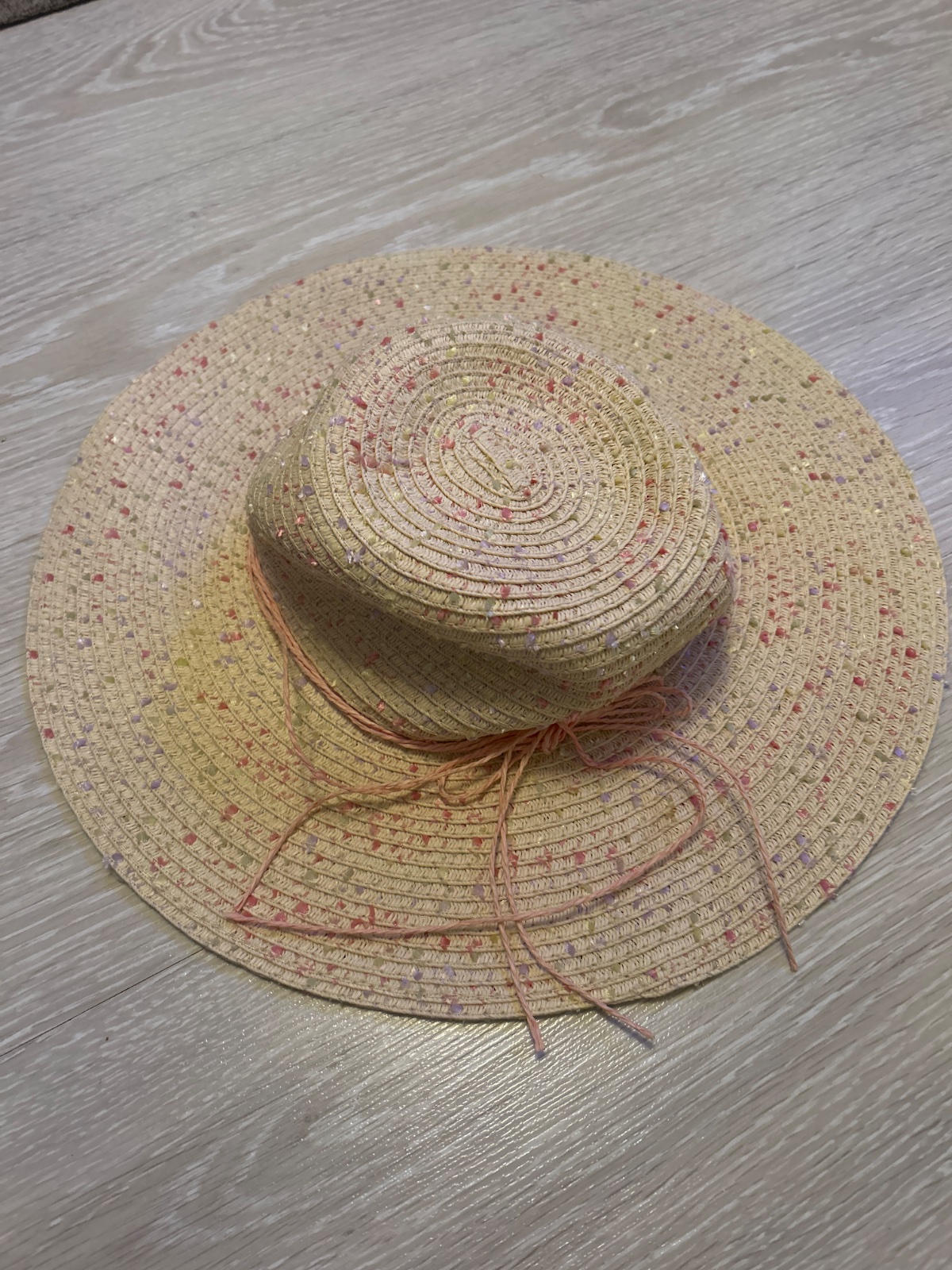 Krásny slamený klobúčik s kvetinkovou aplikáciou a drobnou mašličkou. Klobúčik je v 100% stave bez poškodenia, krásny. Odporúčaná veľkosť je na 6 - 10 rokov.