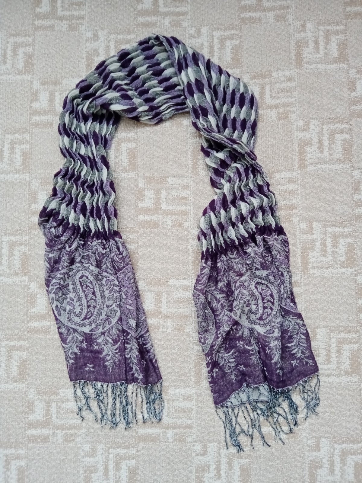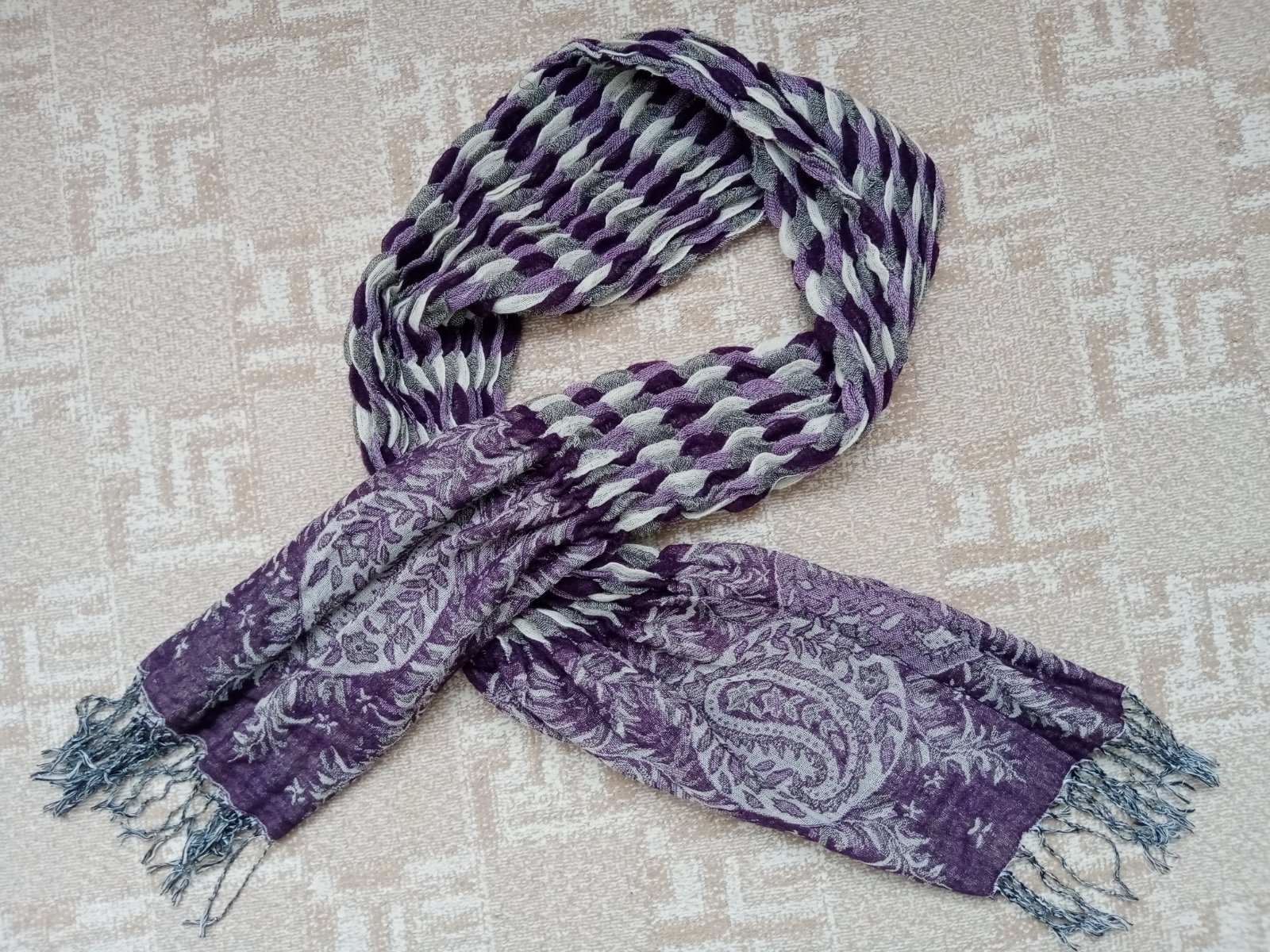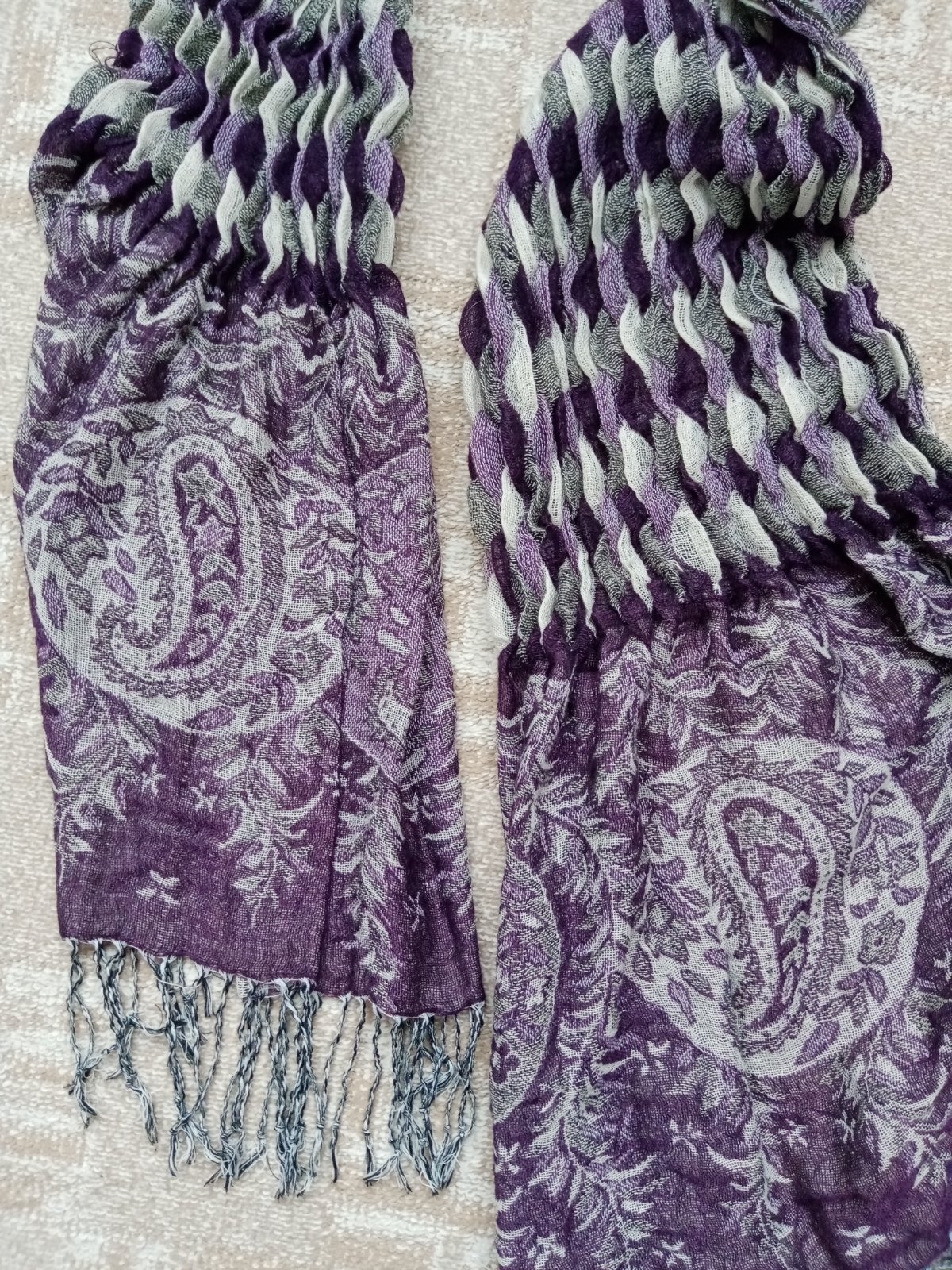 Krásny a netradičný sivo fialový dámsky šál.