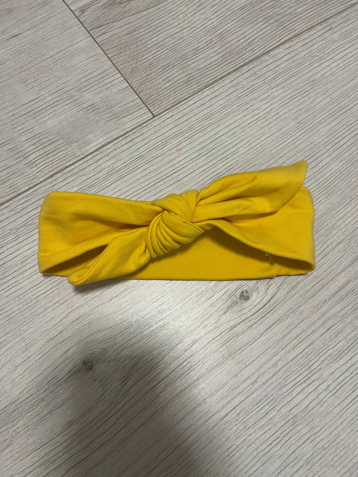Predám žltú uzlíkovú čelenku značky Little People, veľkosť XS: 3 mesiace - 9 mesiacov (19 cm)