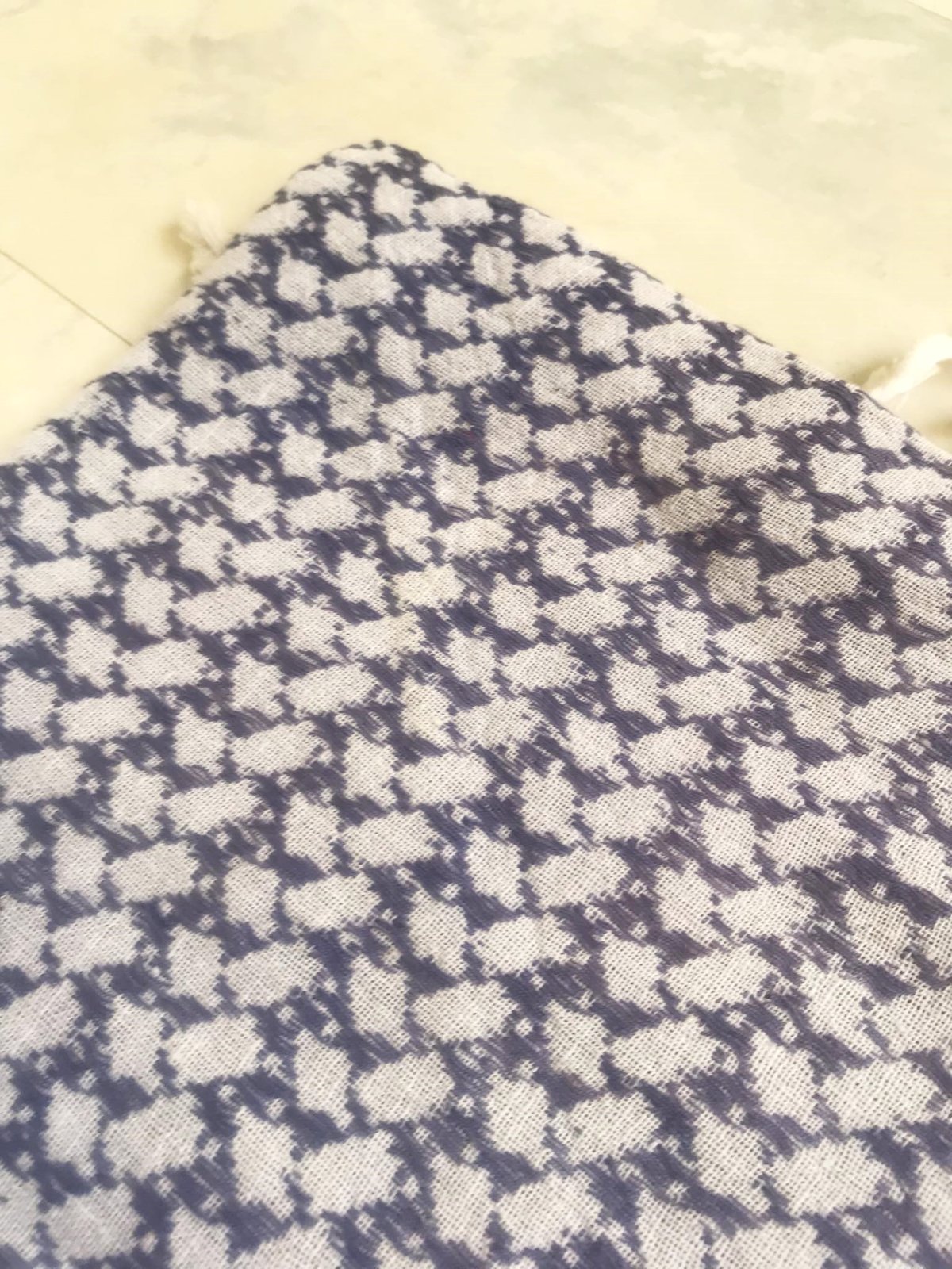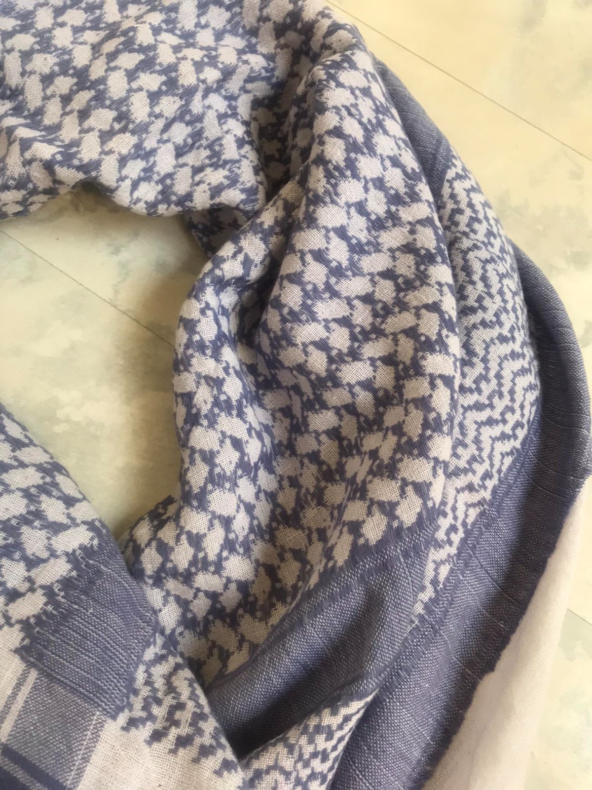 krásna naturálna bavlnená arafatka ,neznosená,veľká,prírodný materiál,má jemne akoby vyblednutý pásik - asi ako bola poskladaná,ja som si to absolútne nevšimla,vôbec jej to neuberá na vzhľade,ale nafotila som to s bleskom,lebo inak to ani nie je vidno a zväčšila fotky - posledné 2 fotky,110 x 110 cm bez strapcov