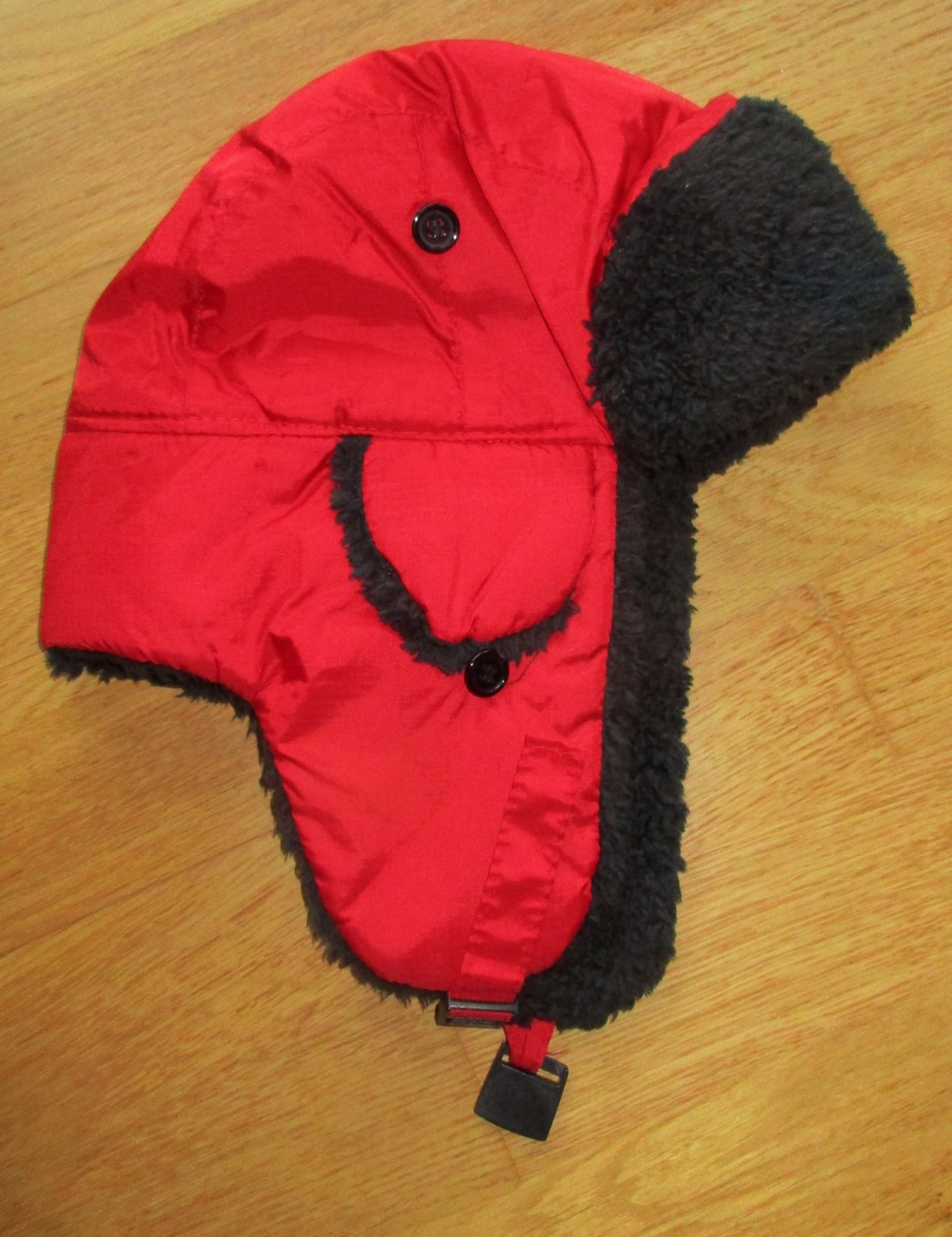 krasna nylonova usianka, stav ako nova, dole sa da zapnut prackou, kt. je na pasiku nastavitelna podla vasej velkosti. Zvnutra umely barancek, jemny, neskriabe. Nam zial mala. Sedi na vacsie dieta alebo pre zenu. Pod tymi malymi unicami je vetracia dierka, usnice sa daju pripnut o gombik. Cela ciapka je jemne zateplena a podsita podsivkou, skvele zahreje, ale nie je prilis hruba. sirka od spodneho okraja na zatylku po okraj na cele je cca 30 cm, na obvod hlavy cca 56 cm.