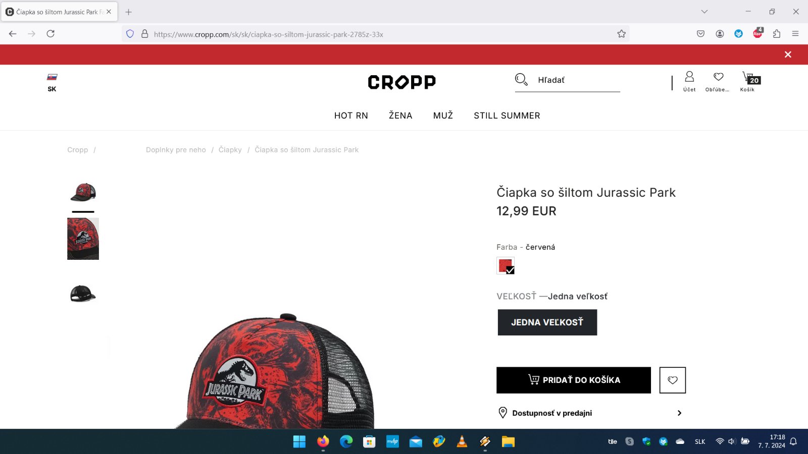 Ďalej predám šiltovku Jurský Park/Jurassic Park. Zloženie: vrchný materiál 100% bavlna, podšívka 100% polyester. Šiltovka je nová. Cena 8eur.