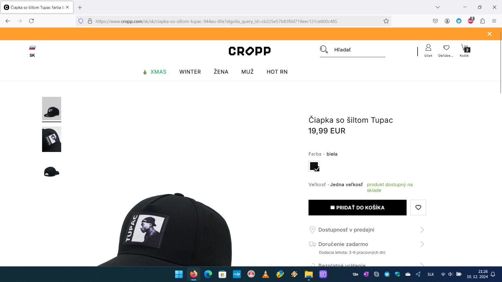 Predám šiltovku 2Pac/Tupac. Zloženie: 100% bavlna. Šiltovka je nová. Cena 10eur.