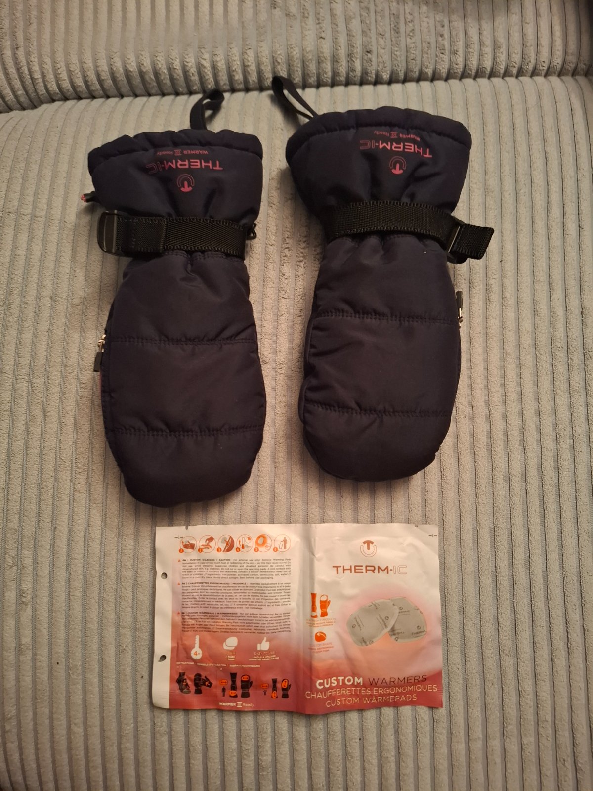 Rukavice 9-10 rokov, použite 3x , je do nich aj vreckovy ohrievač, ktory je nepoužitý.