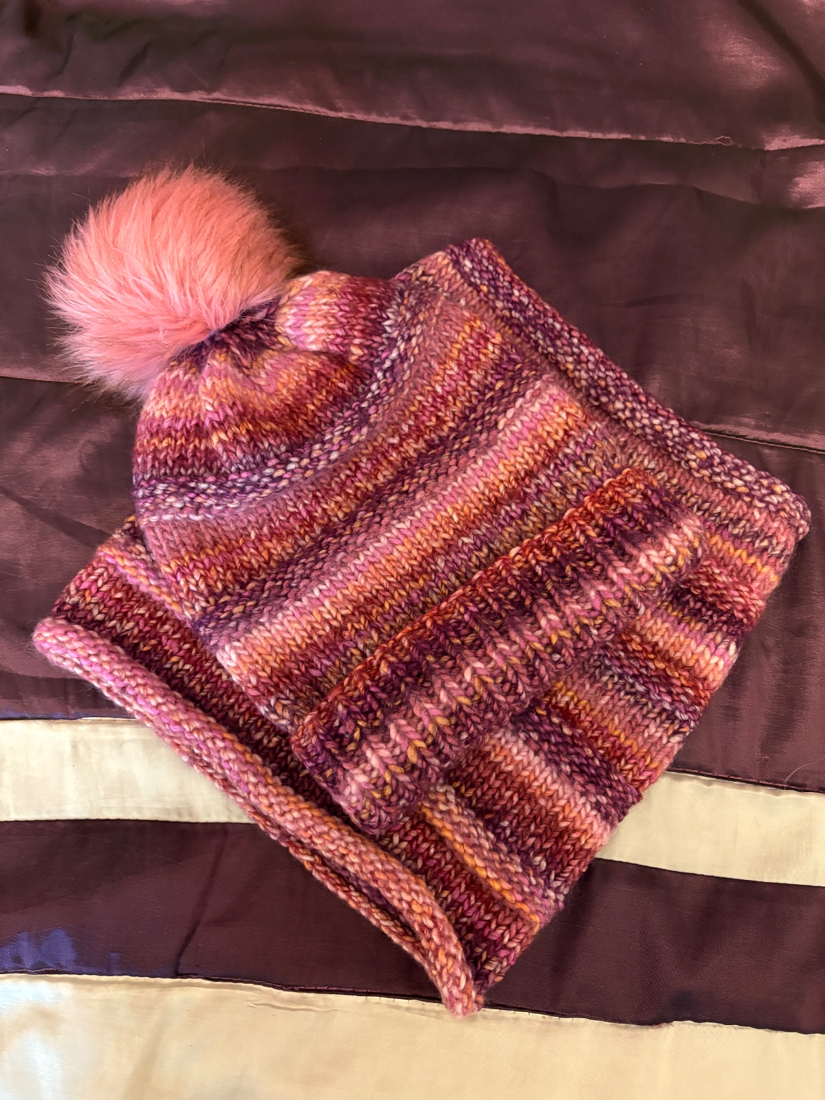 Set ciapka a tunel, ruzove odtiene, malo nosena.
