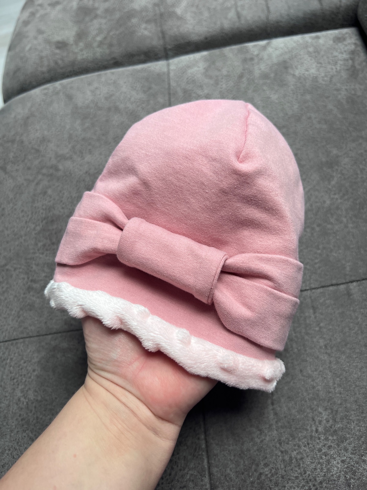 Nádherná ručná práca, nenosili sme lebo nám veľkosť vyšla na leto . Zvnútra minky zateplená, krásna ružová jemná farba, zvonku čistá kvalitná bavlna. Veľmi príjemná na dotyk. Veľkosť 68 - 74/80. Odporúčam!