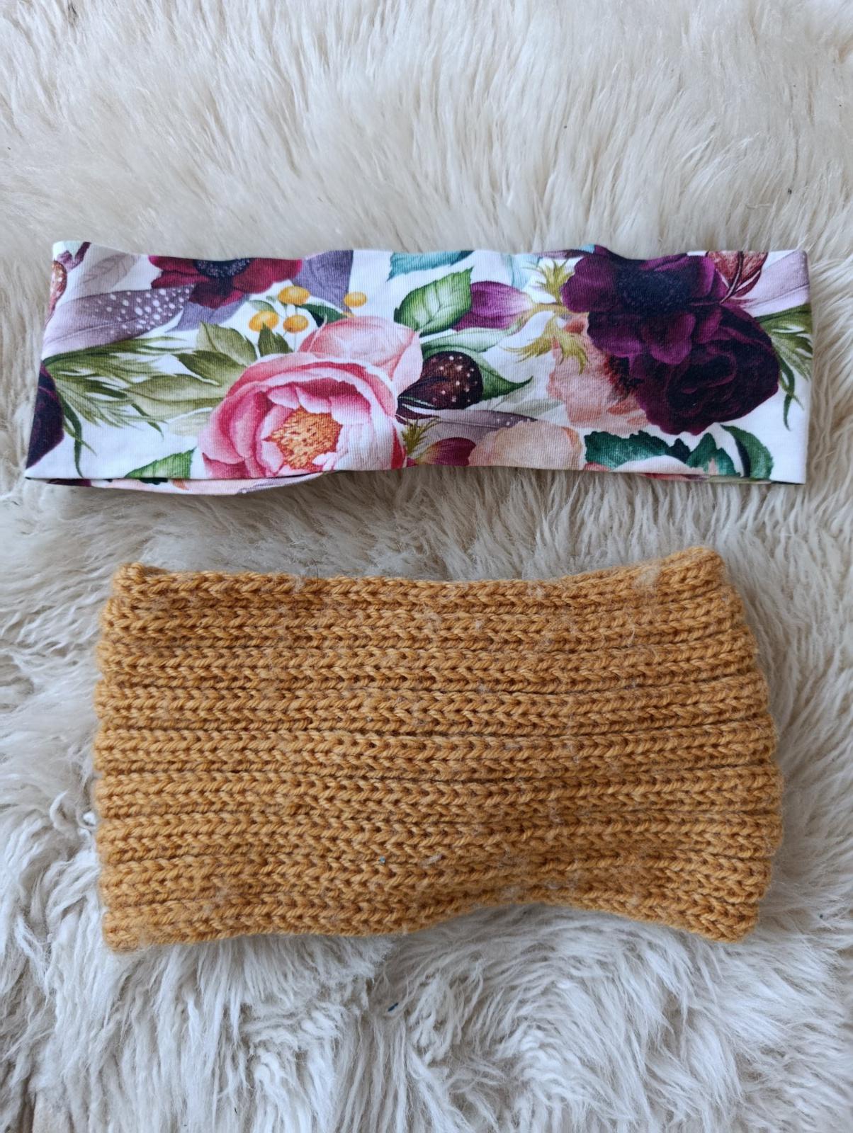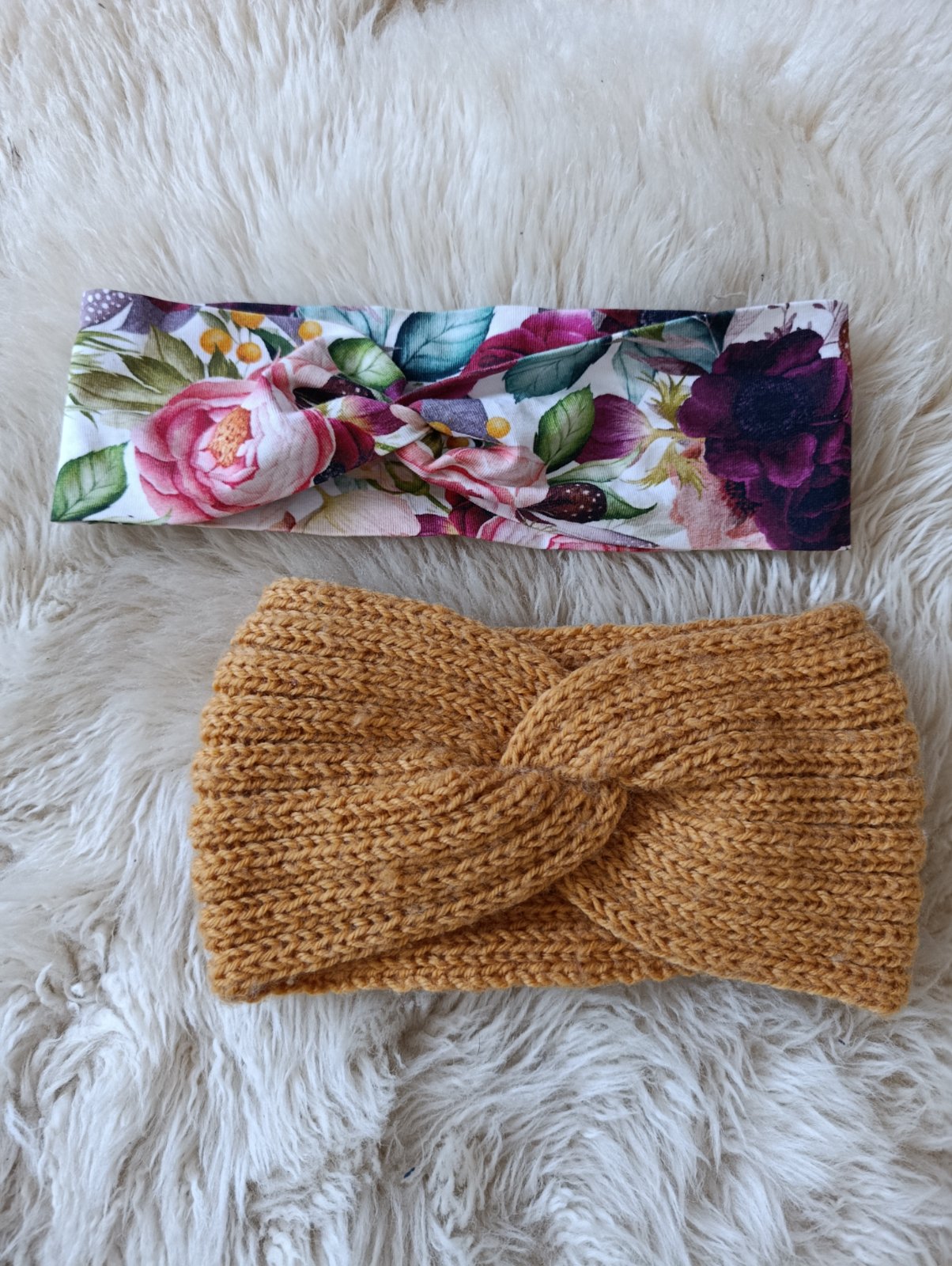 Čelenky v super stave, kvetinová bavlnená, horčicová pletená, cena a predaj spolu!