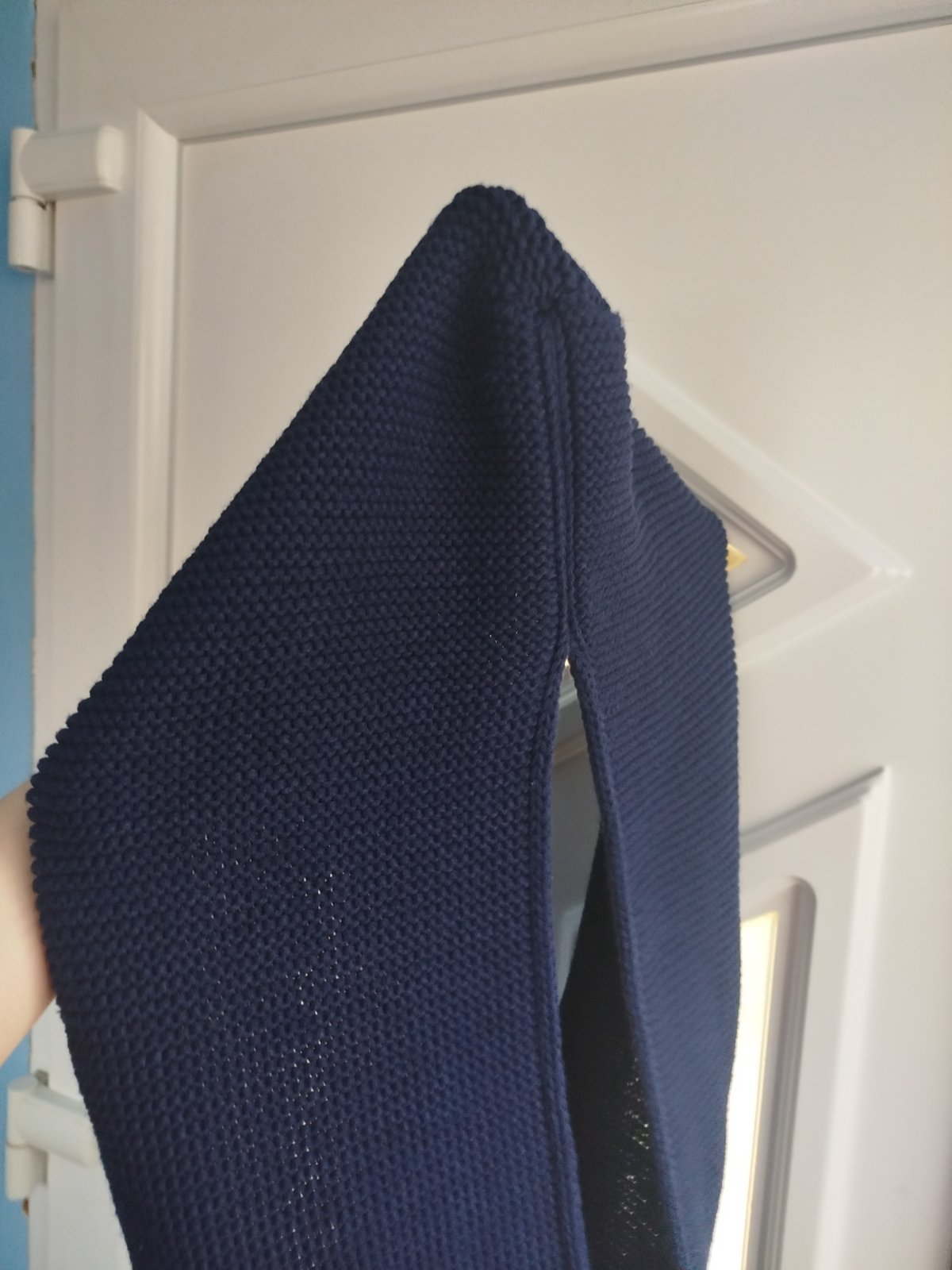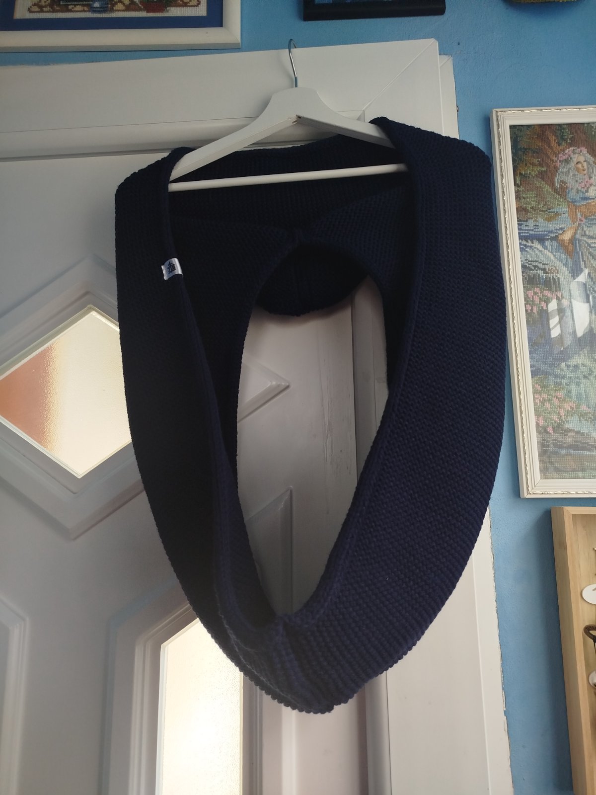 veľmi pekný stav, praktické 2v1, farba pekná tmavomodrá, tunel a pokrývka hlavy v jednom