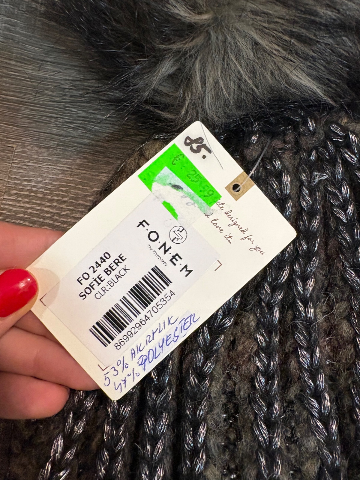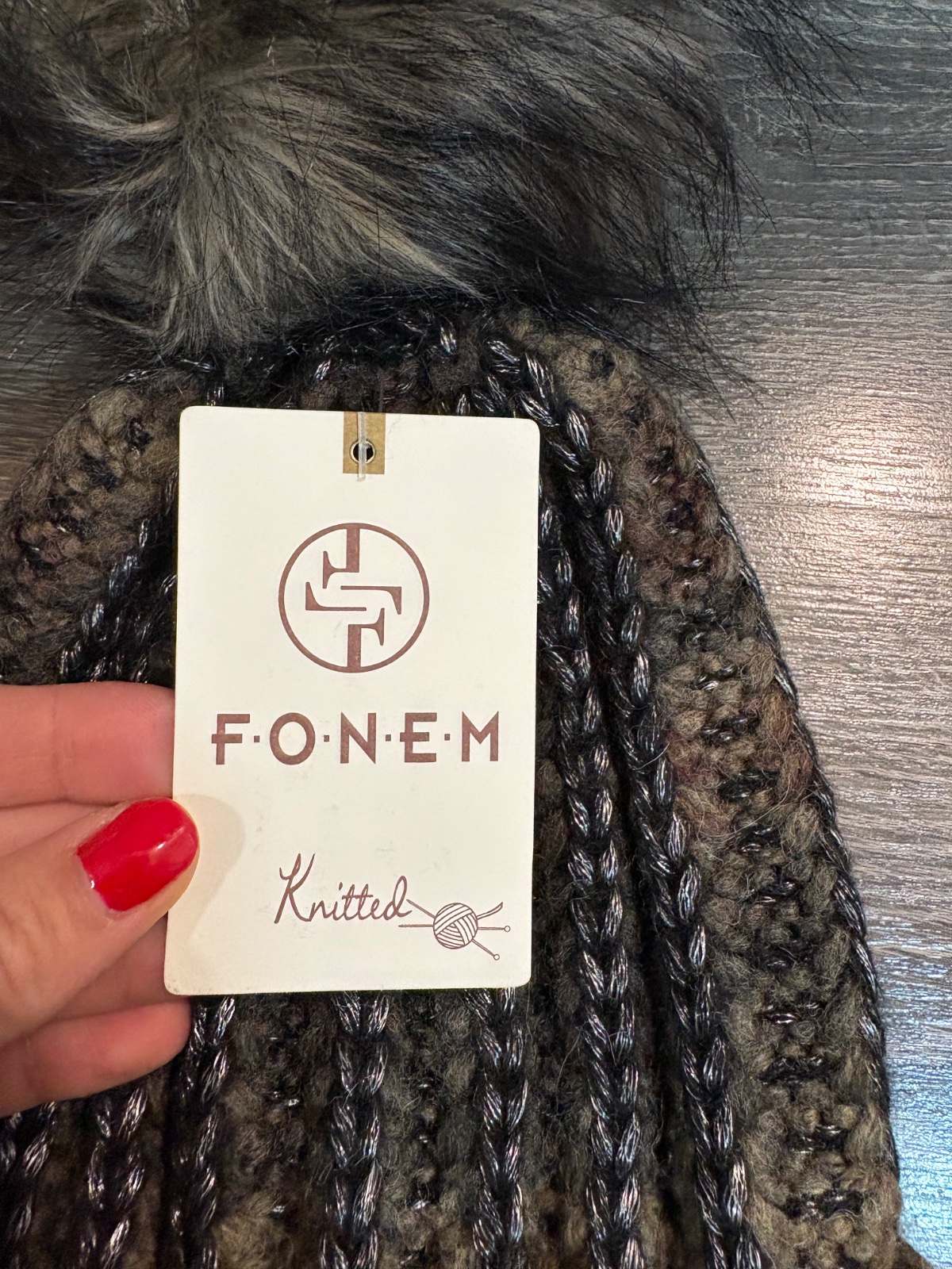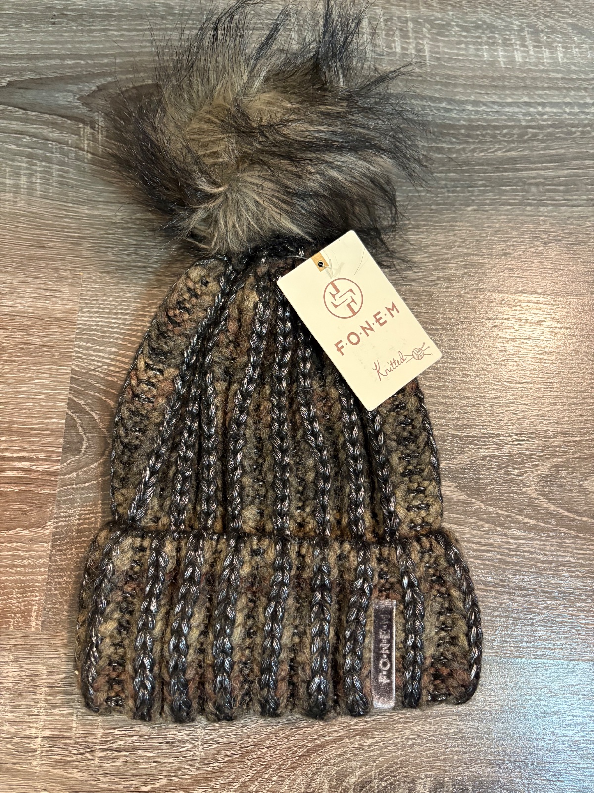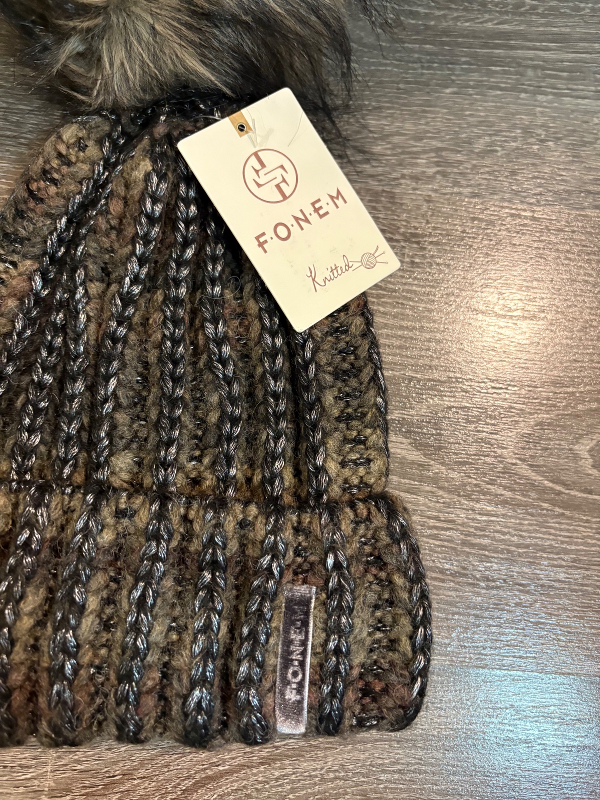 95.Fonem štylova nova damska čiapka s brmbolcom,velkost uni.Kombinacia čiernej s hnedou.PC bola 26eur