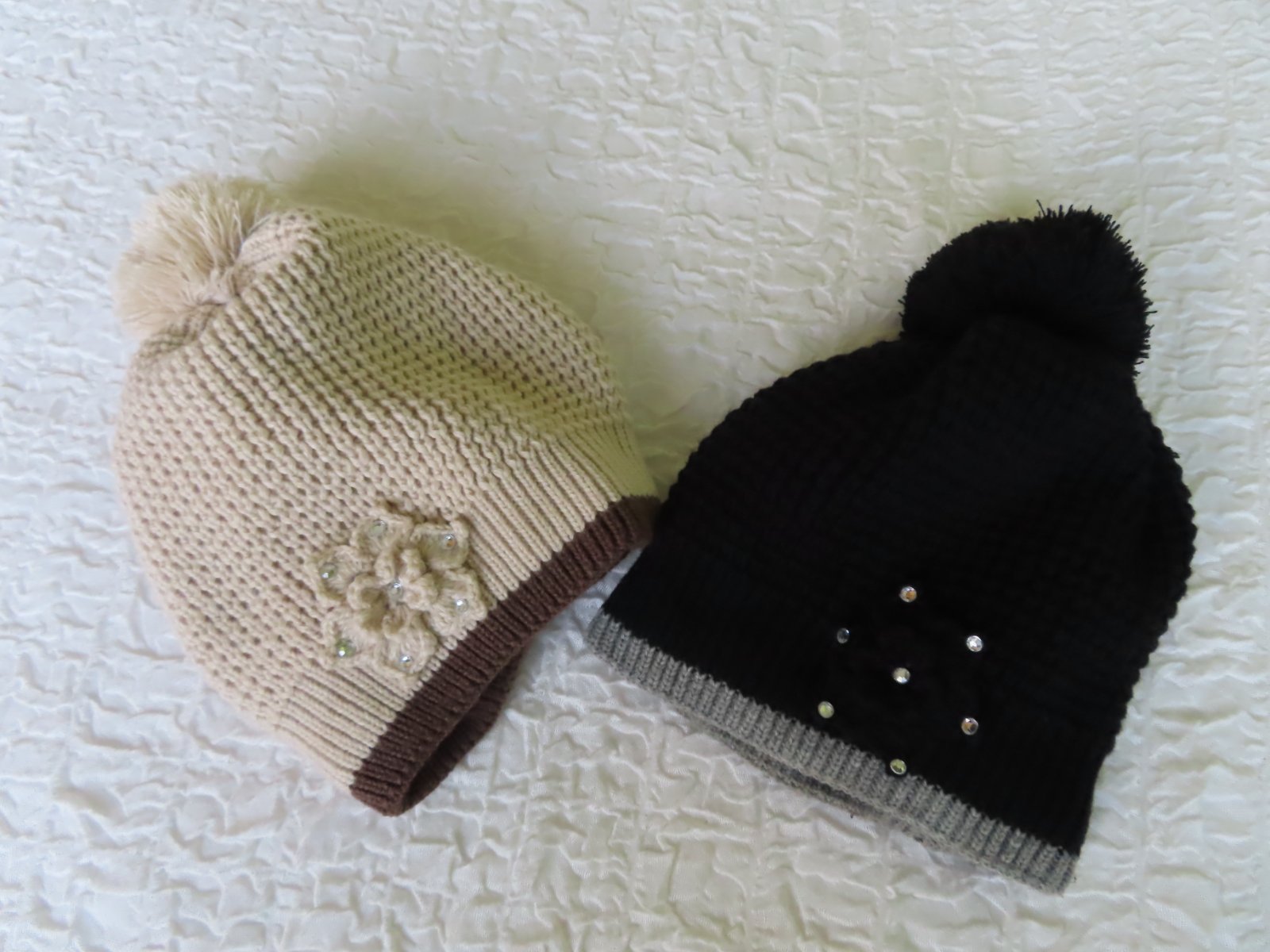 Dámska čiapka s kvetom a perličkami. Čiapka je teplučká, podšitá jemným fleesom.