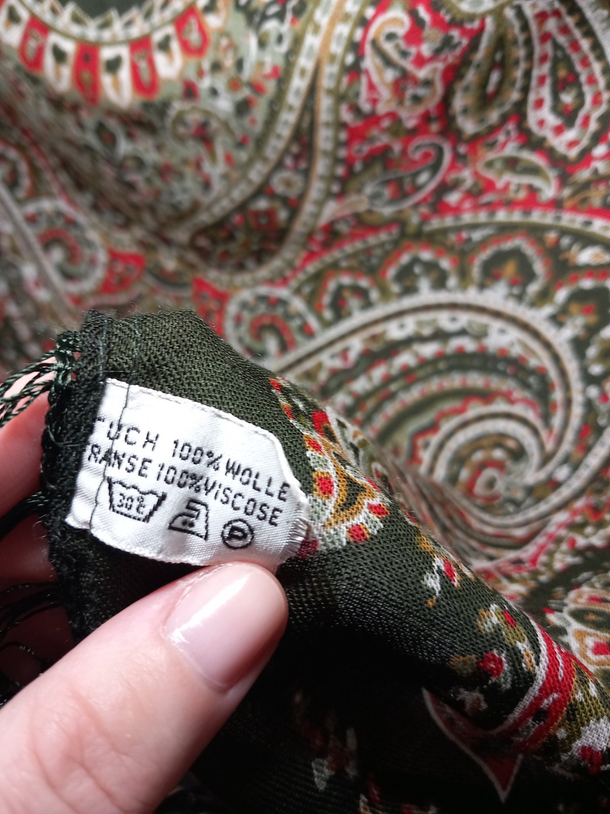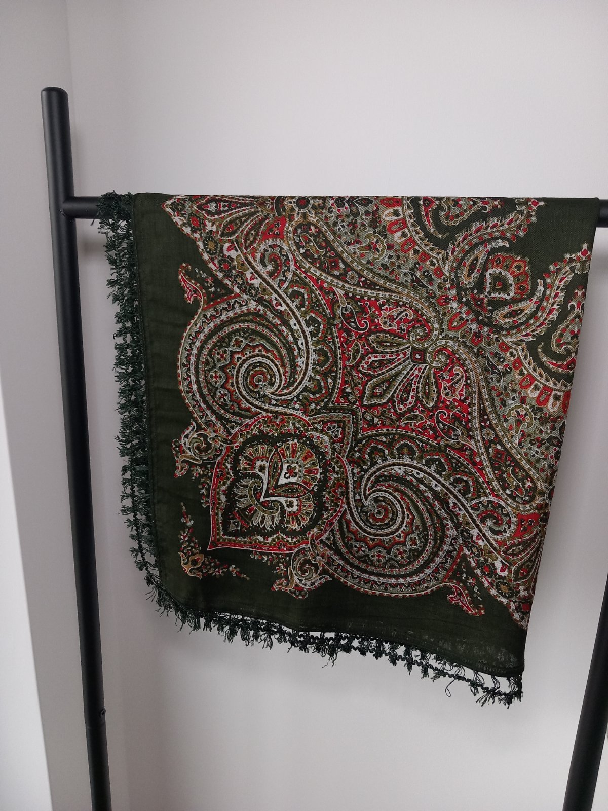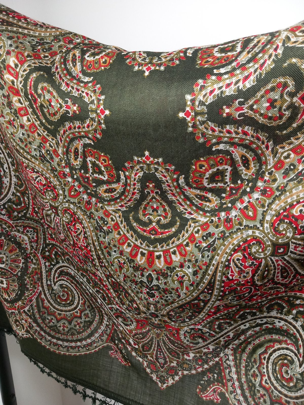 Jedinečná vlnená šatka s jemným lemovaným okrajom. Je to originálny kúsok, ktorý sa hodí na ozvláštnie outfitu. Šatka je ľahká, nebude škriabať na pokožke. Je s minimálnymi známkami nosenia.