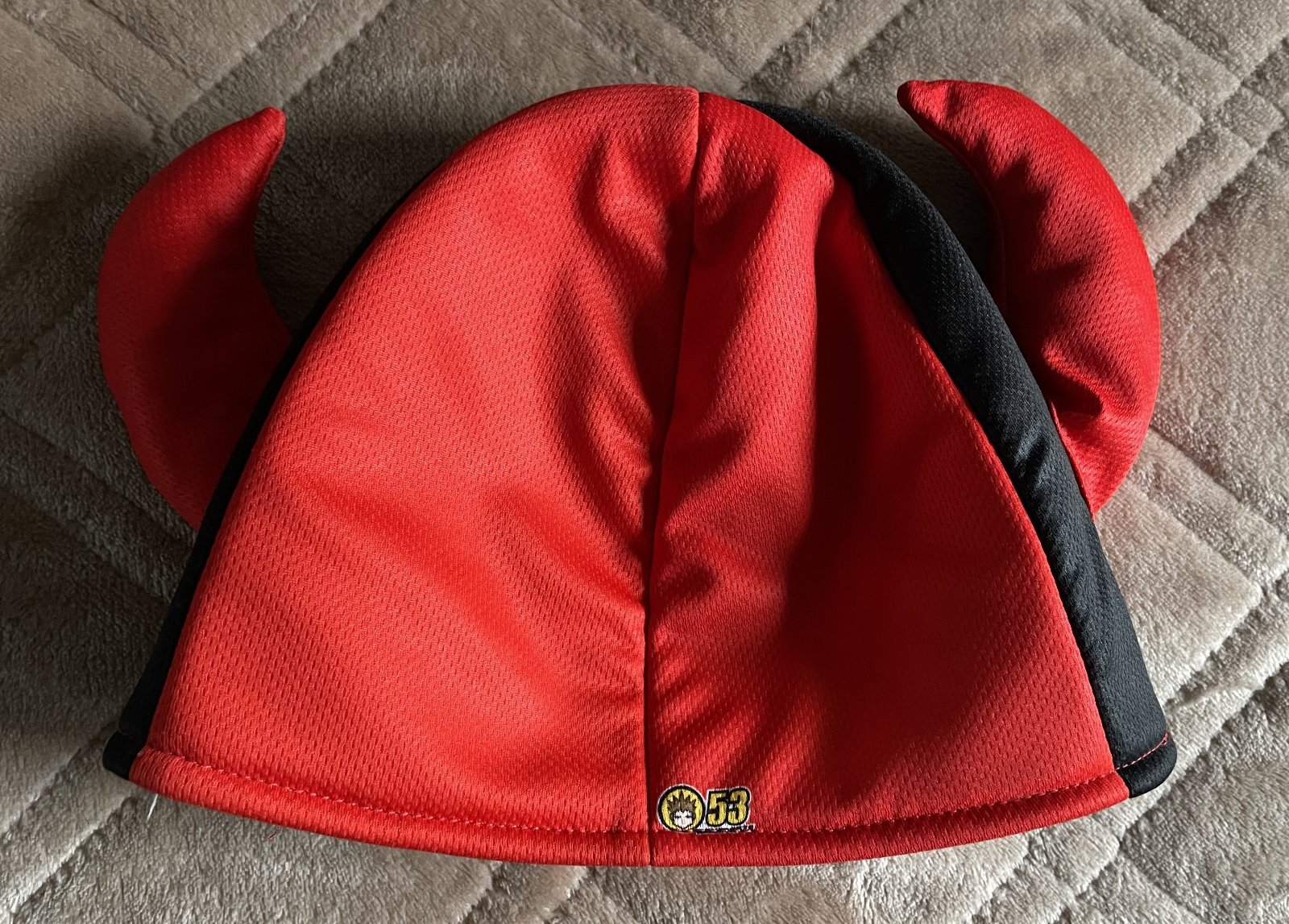 Čiapka s rohmi. dĺžka 20cm a šírka 2 x 28cm.