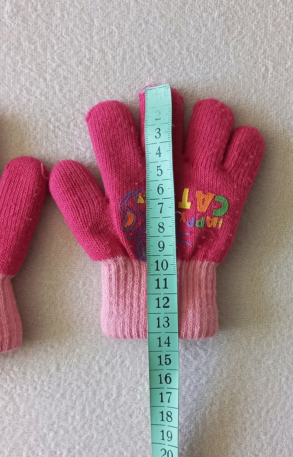 hrubšie pletené rukavice, dcérka ich nosila do škôlky, keď mala 3-4 roky. Nosené, nepoškodené. Dĺžka je na fotke. Máme viacero detských vecí, môžete si zostaviť vlastný balíček. Pri kúpe viac vecí sa rada dohodnem na zľave.