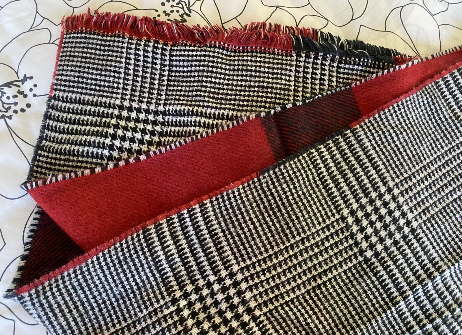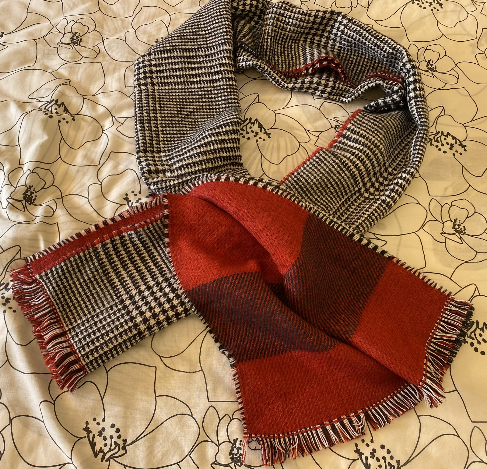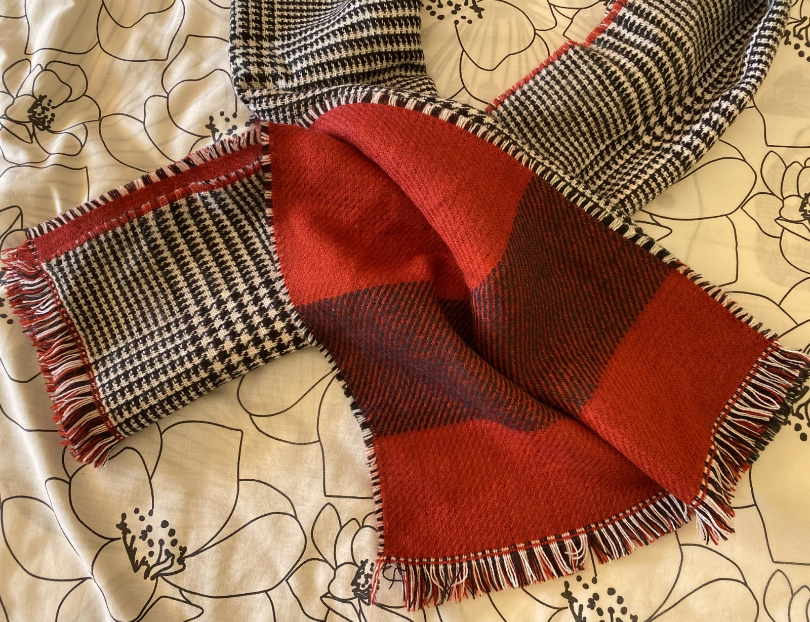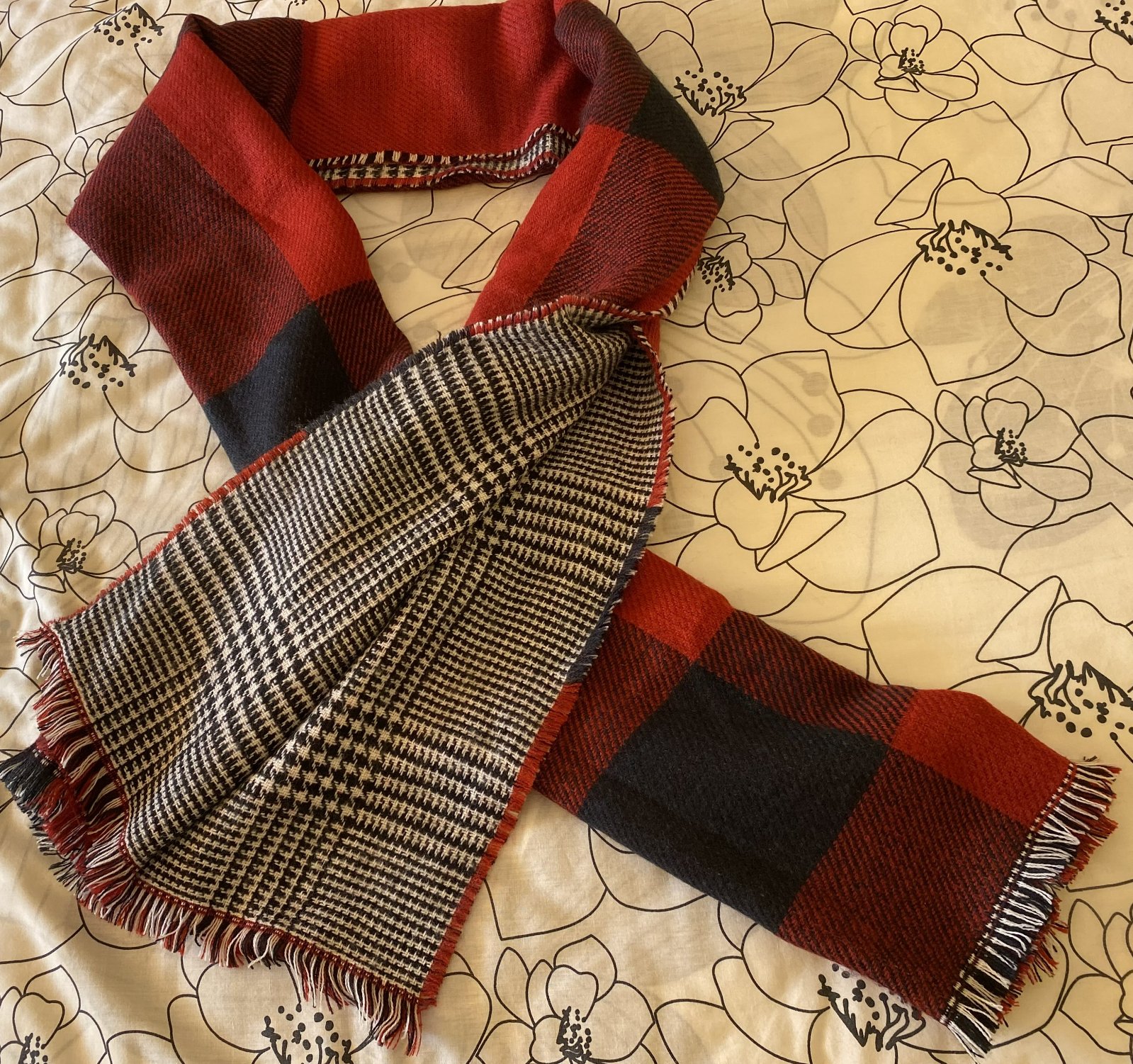 Nový elegantný mäkký obojstranný šál - UNI - iba skladovaný, už bez visačky, vhodný pre pánov aj dámy, materiál 100% acryl, kombinácia farieb čierna - biela, červená. Miery: dĺžka aj so strapcami: 200cm, šírka so strapcami: 63cm. Pôvodná cena: 12.98.