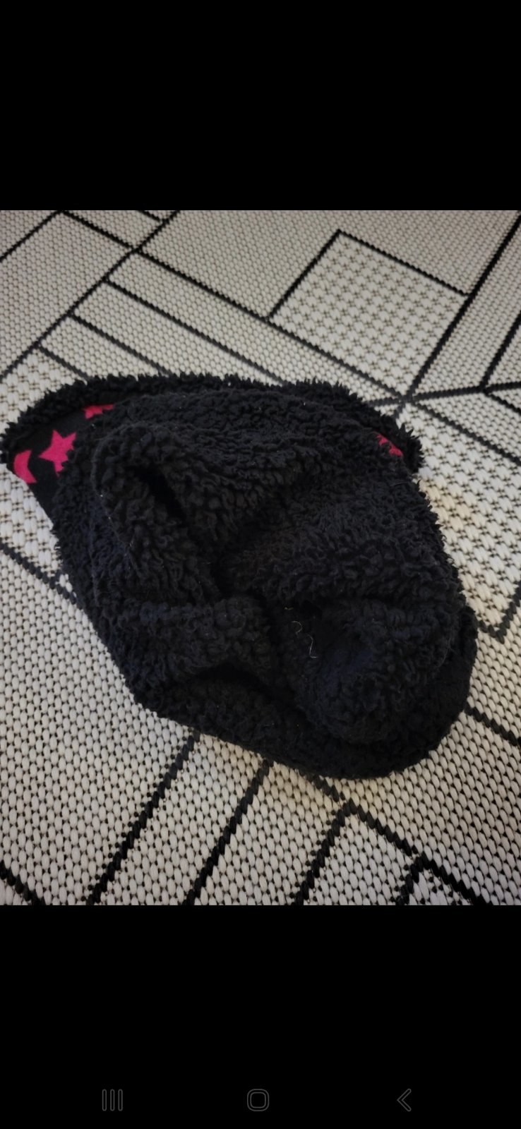 veľmi dobrý stav, rúžovo/čiernej farby, z vnútornej strany flís, výška 28cm a šírka 22x2, rúžové hviezdičky sú tlmenejšej farby ako na fotke, pošlem ako doporučený list