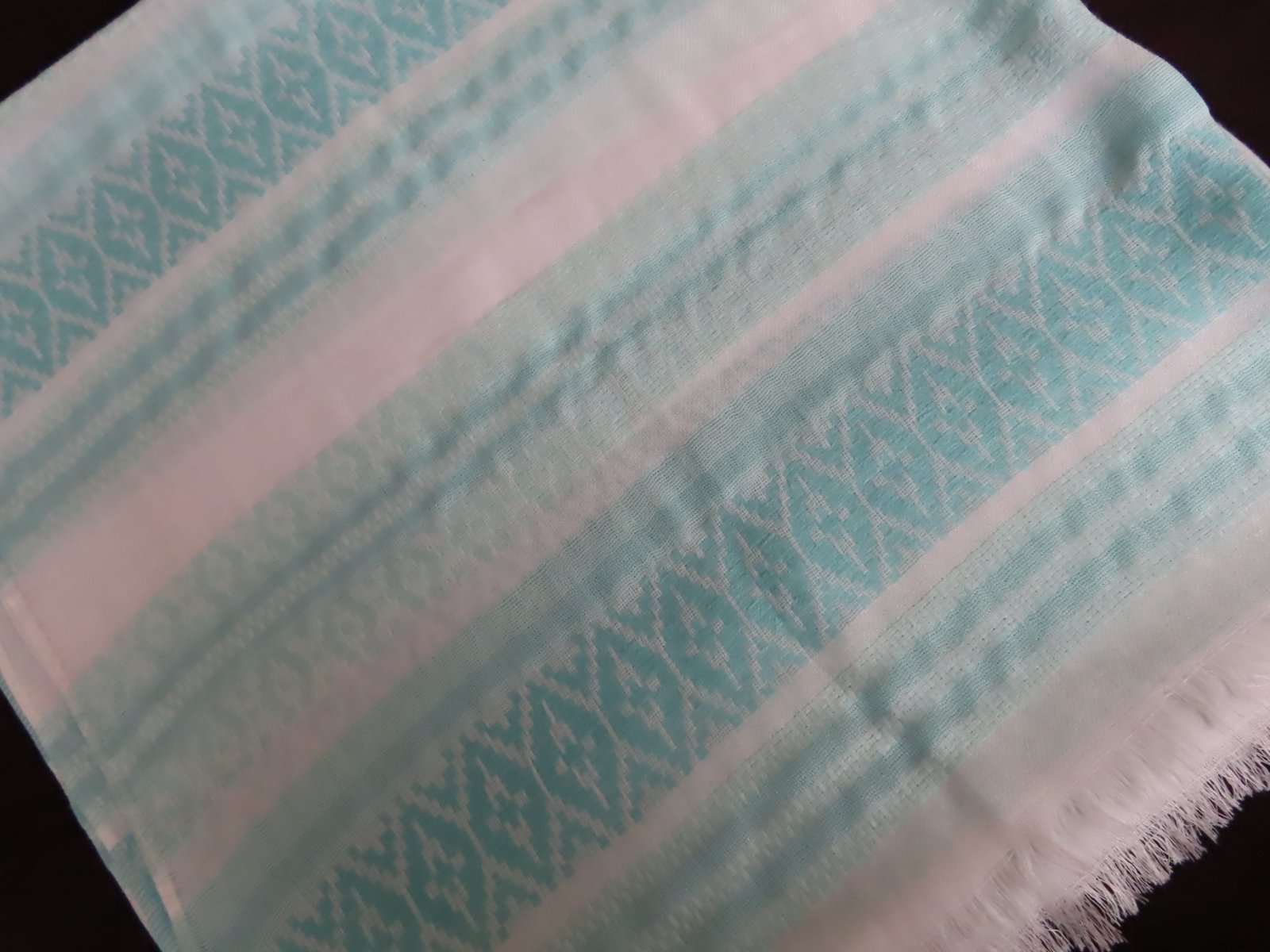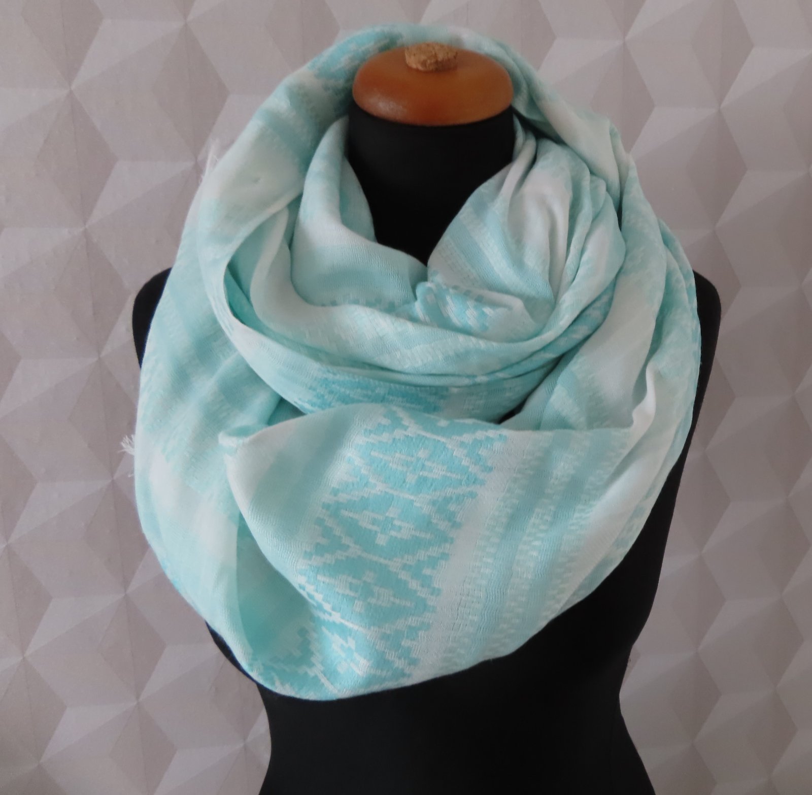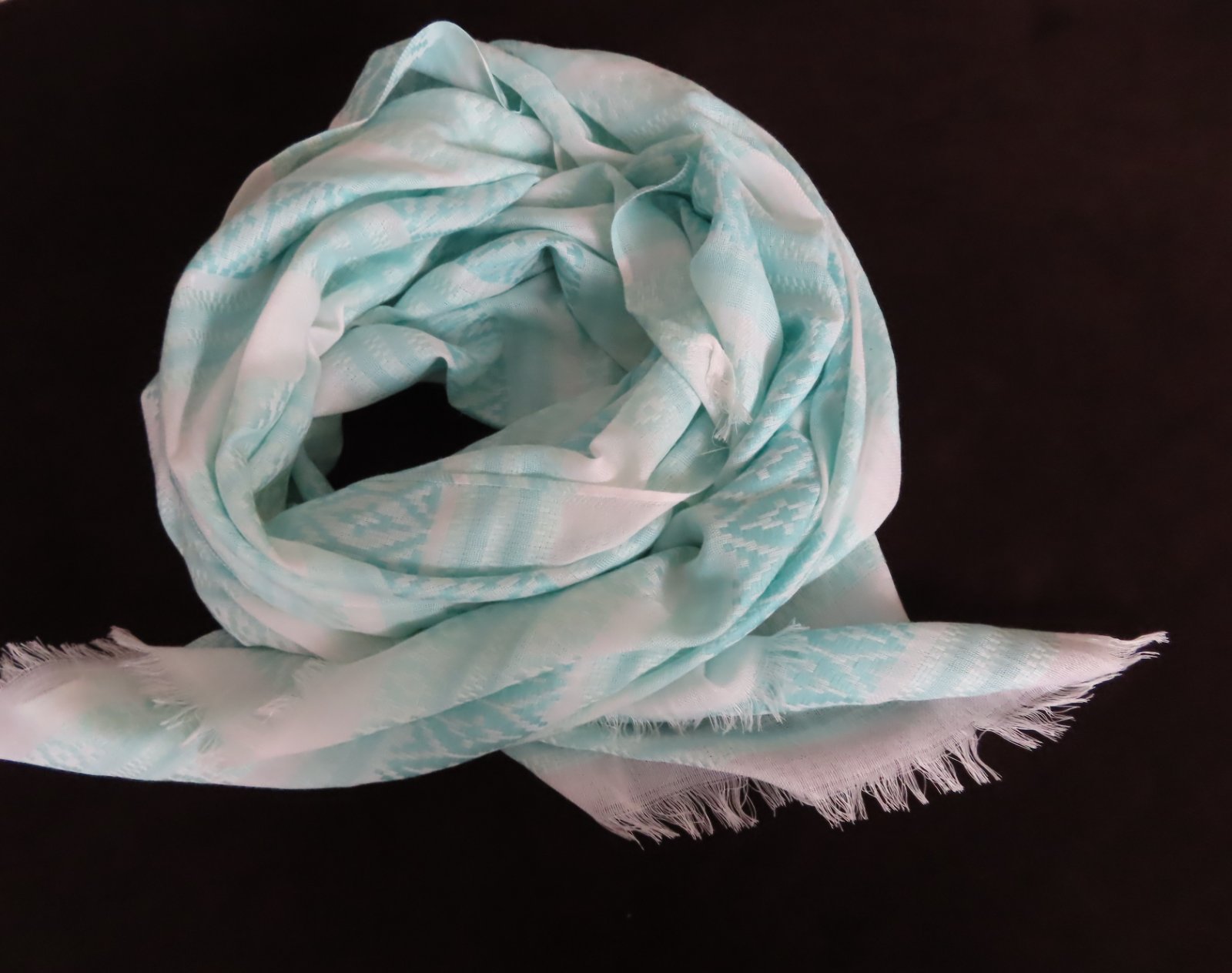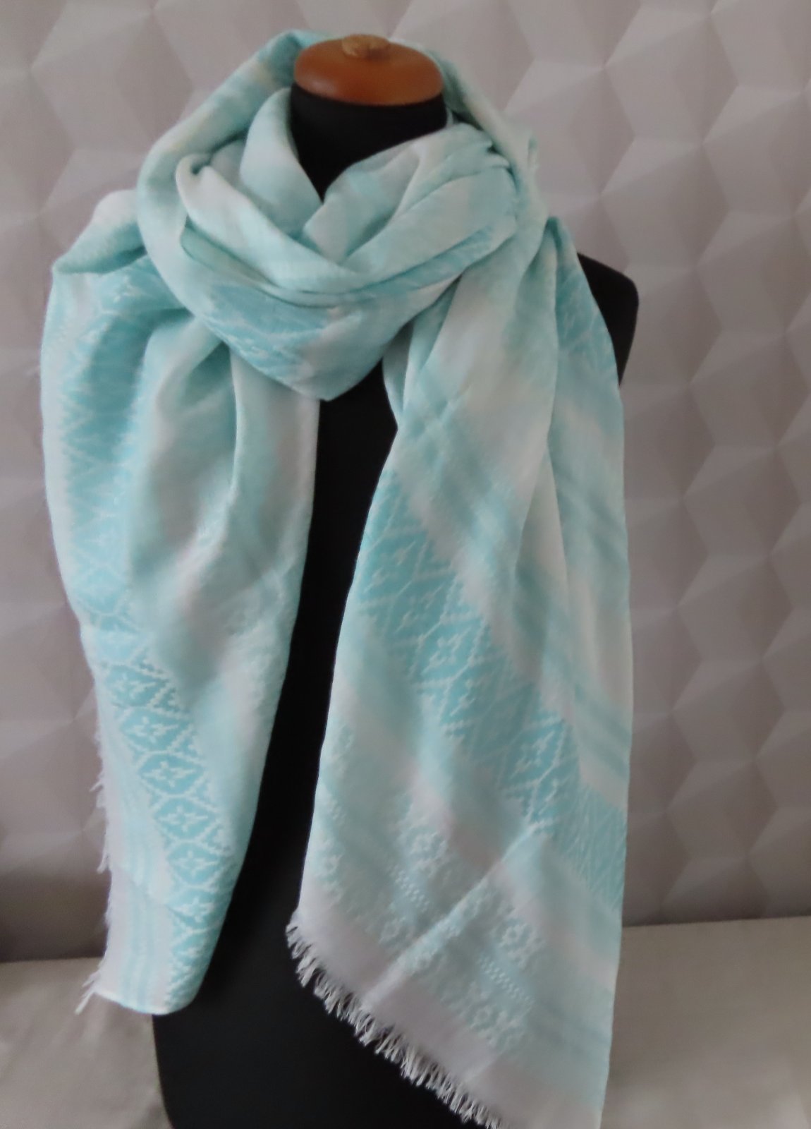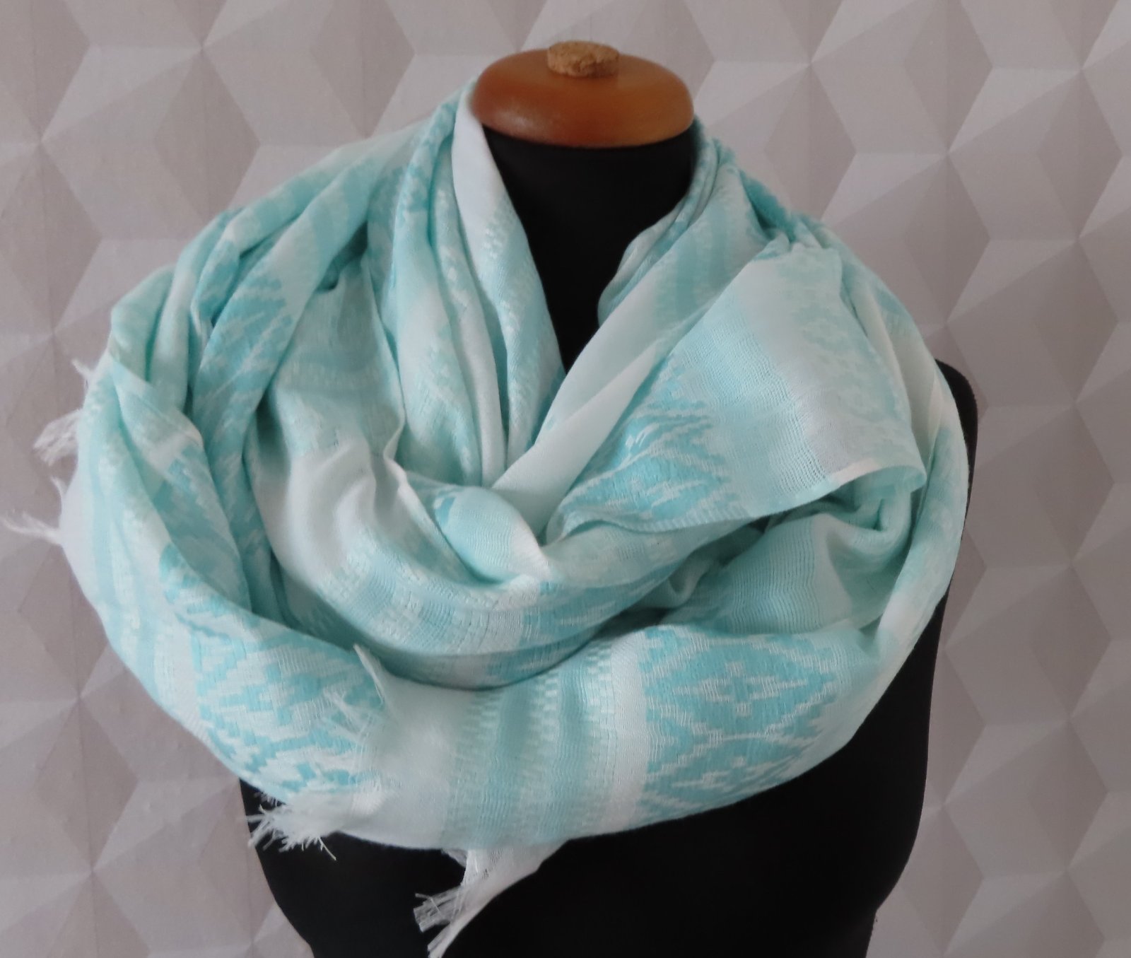 Oživte svoj kabát alebo bundu týmto veľkým bavlneným šálom so svetlo zelenými vzormi.