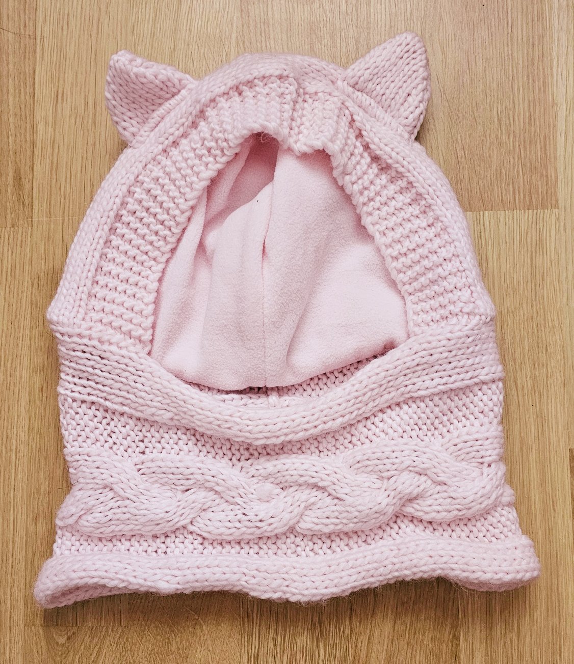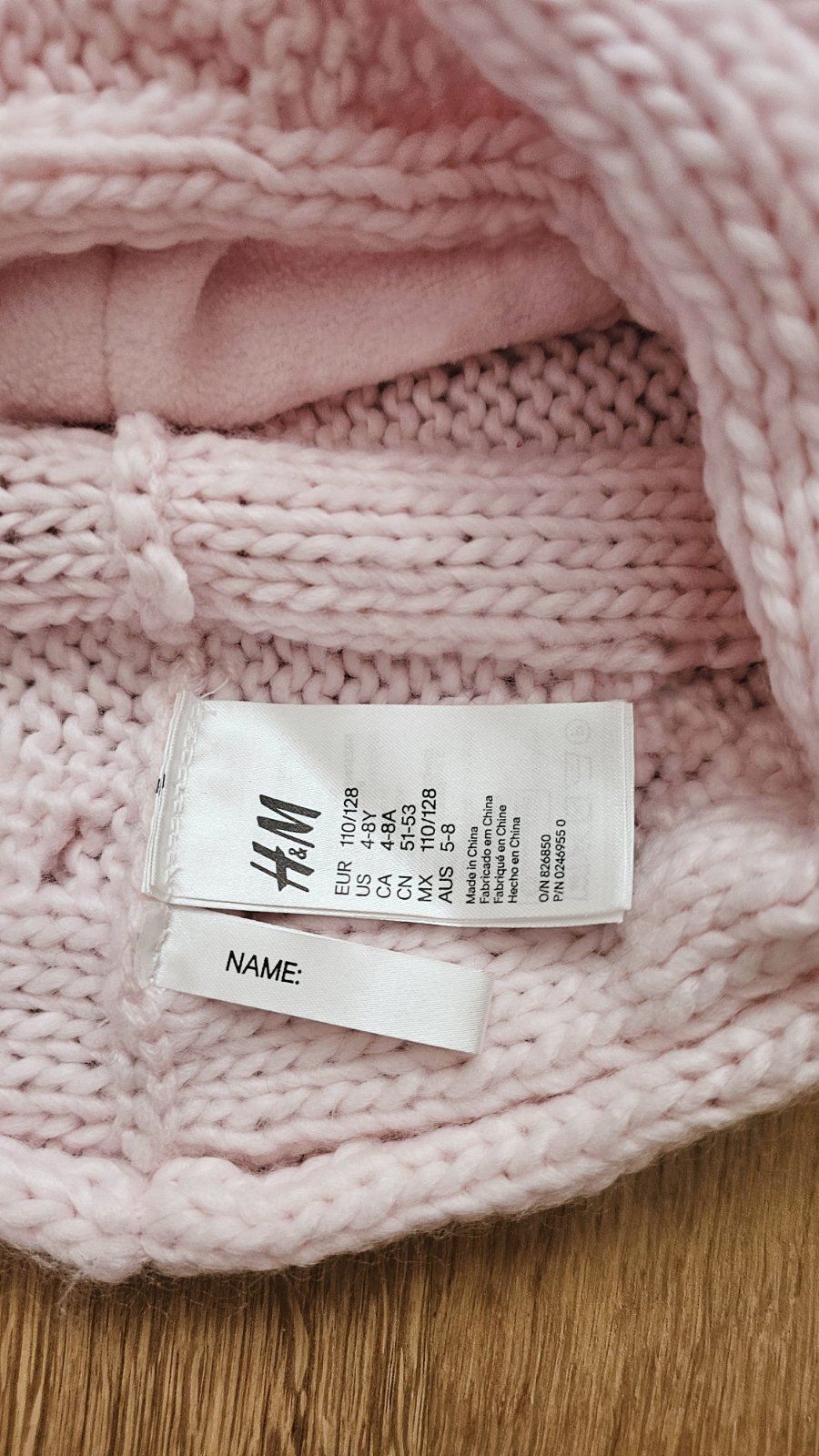Veľ.110/128 určite aj väčšia, materiál elastický a výrazne sa prispôsobí veľkosti hlavy a zároveň mäkký a hrejivý. 100% acryl. Vnútro zateplené.