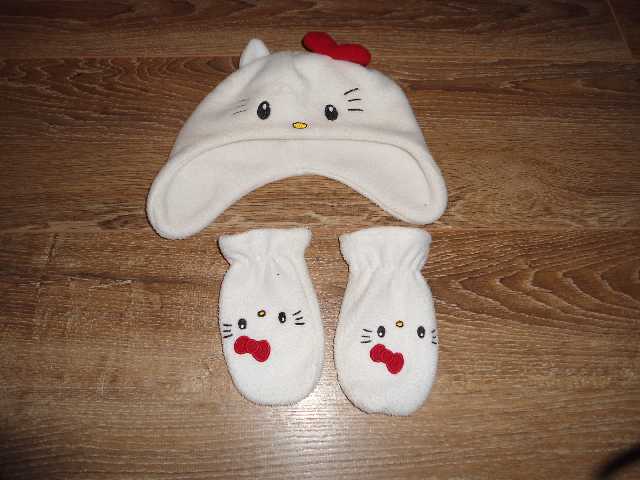 pekny biely setik na zimu kitty SANRIO velkost 2-4 roky nosene mojou malou ale zachovale rukavicky su uz neni celkom biele ako ked boli nove