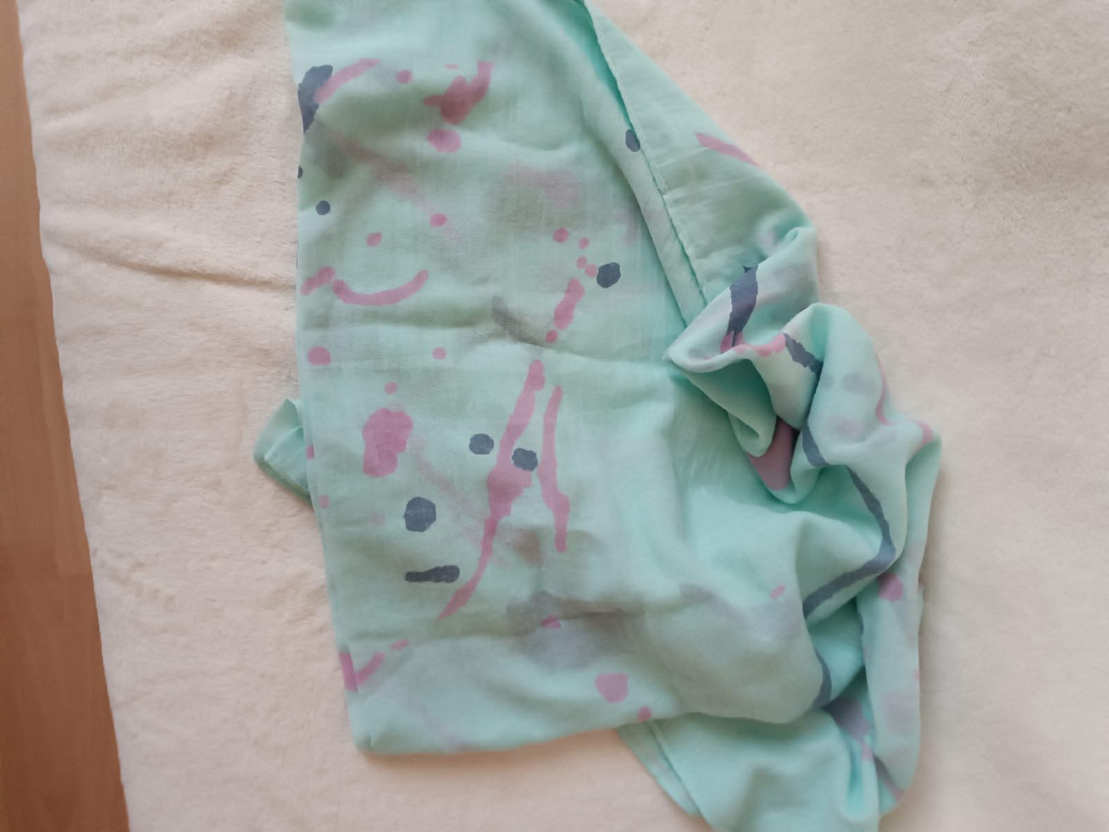 Bielo/zelená šatka 100% bavlna , cena 5€, možný odber v ba, + poštovné , min. nosená ako nová, iba opratá,kľudne píšte sms, volajte 0905215552
