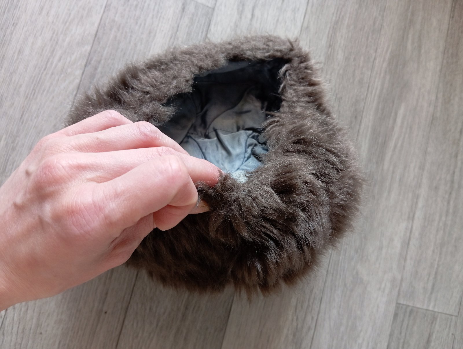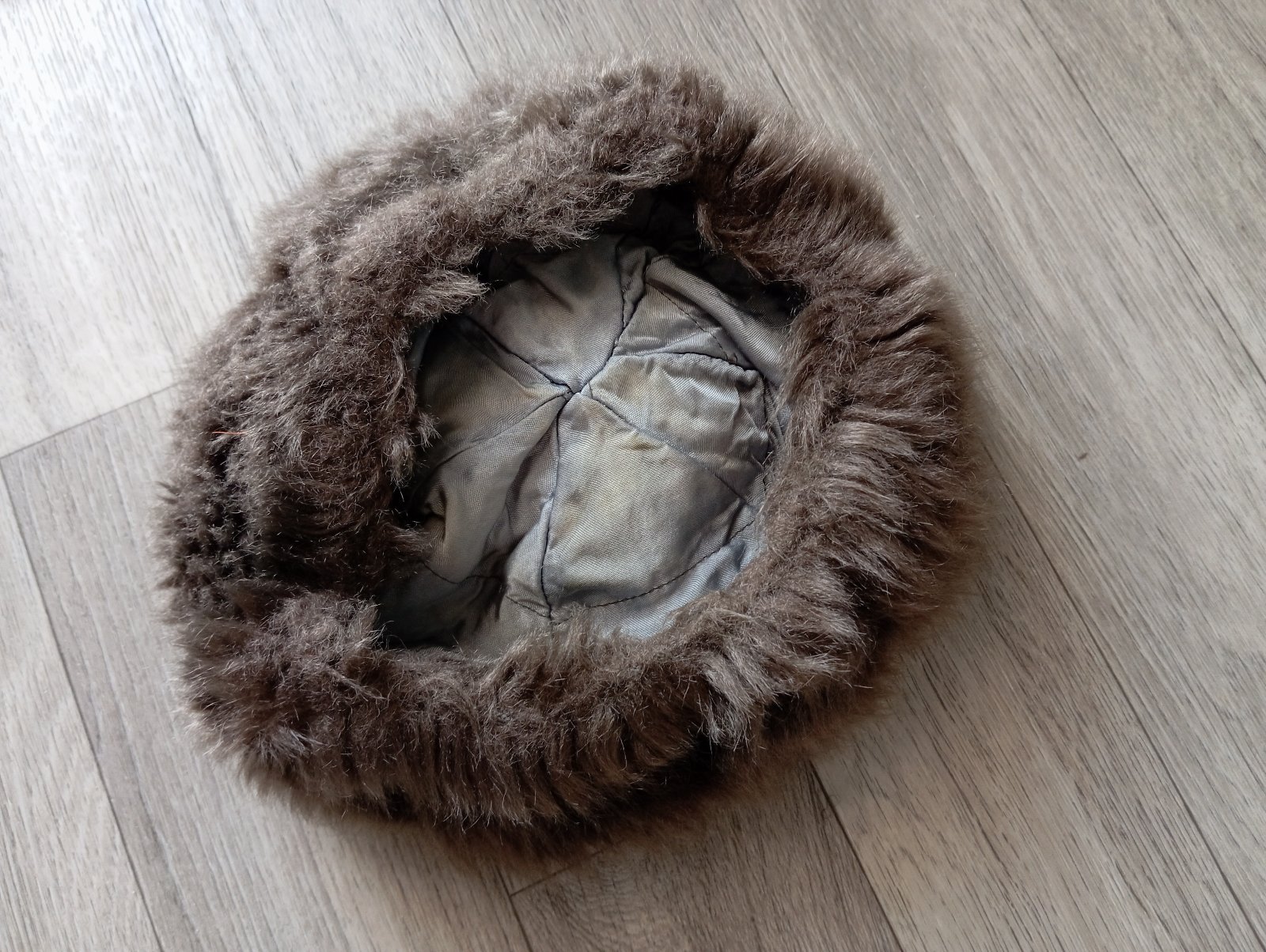 Stará huňatá podšitá baranica s brmbolcom. Vhodná na bežné nosenie aj ako dobová rekvizita.