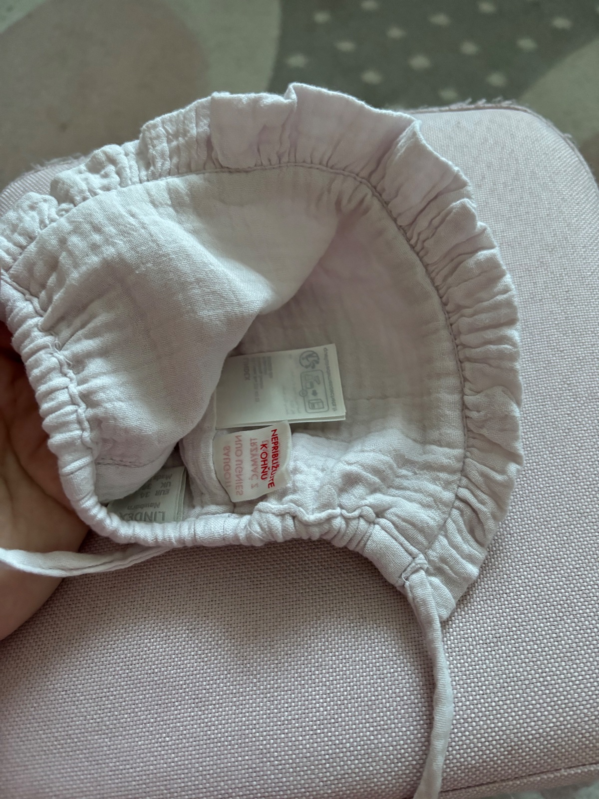 Krásny tkaný klobúčik jemná lilac farba, my sme ho využili asi mesiac.Veľkosť 34 newborn. Cena 6€+ poštovné