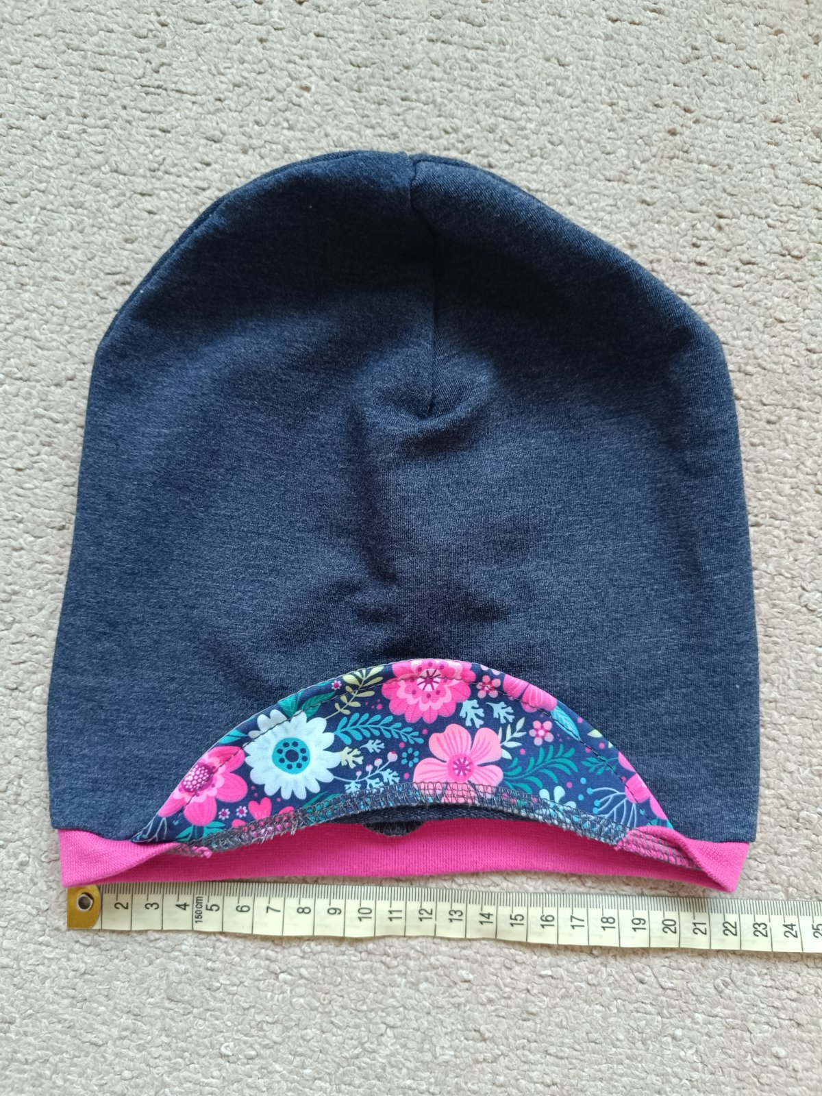 Máličko nosená čiapka so šiltom. Zakryje uši, jednovrstvová vhodná na jar/jeseň, keď dieťaťu vadí priame slnečné svetlo do tváre. Šilt je z hornej strany reflexný, z opačnej strany kvetovaný.