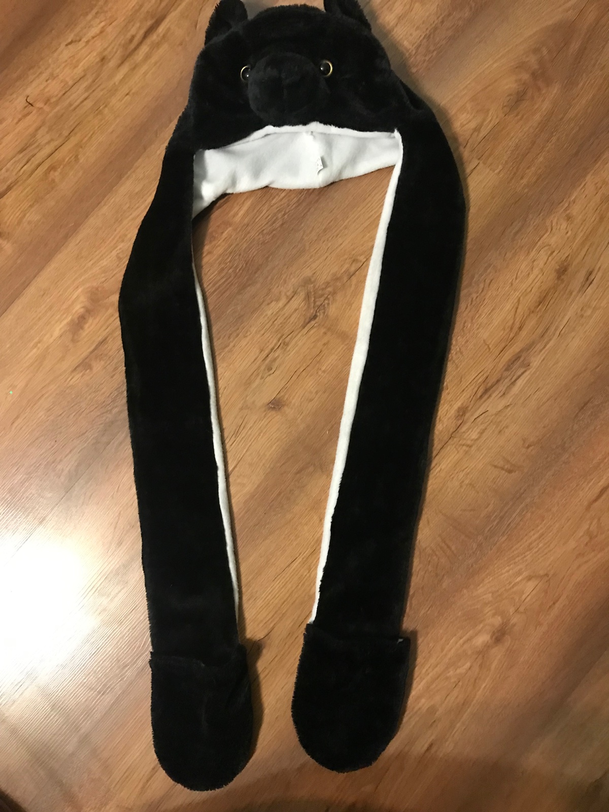 Hrejivá čiapka, ktorá je zárovenň aj šál a rukavice. Nosil ju syn keď mal 6-8 rokov