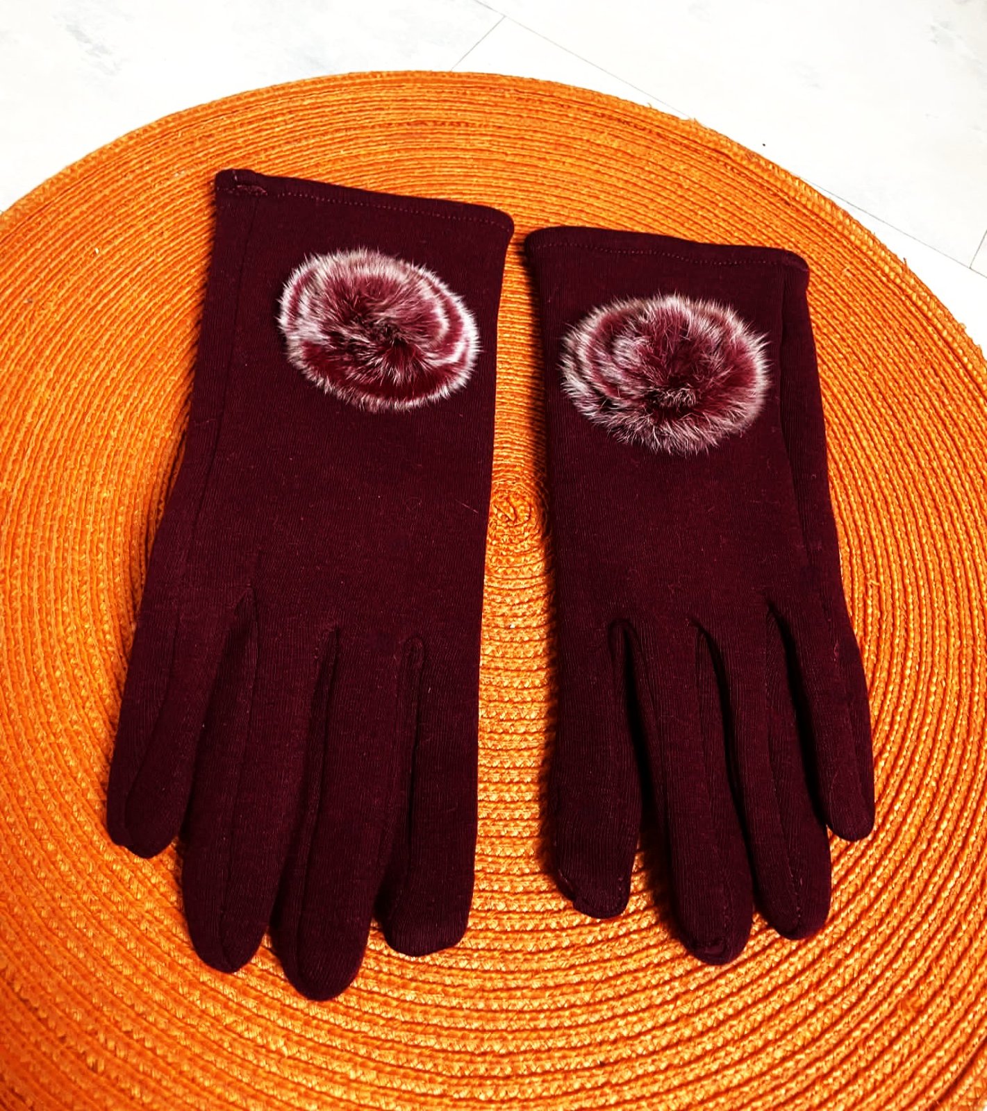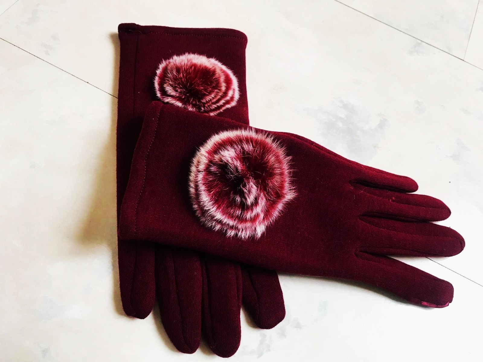 luxusné rukavičky,poddajné,dnu zateplené,veľmi zaujímavé,ozdobené jemnou kožušinkou,na 2 prstoch vkusné saténové nášivky prispôsobené na dotykový telefón..top stav a kvalita